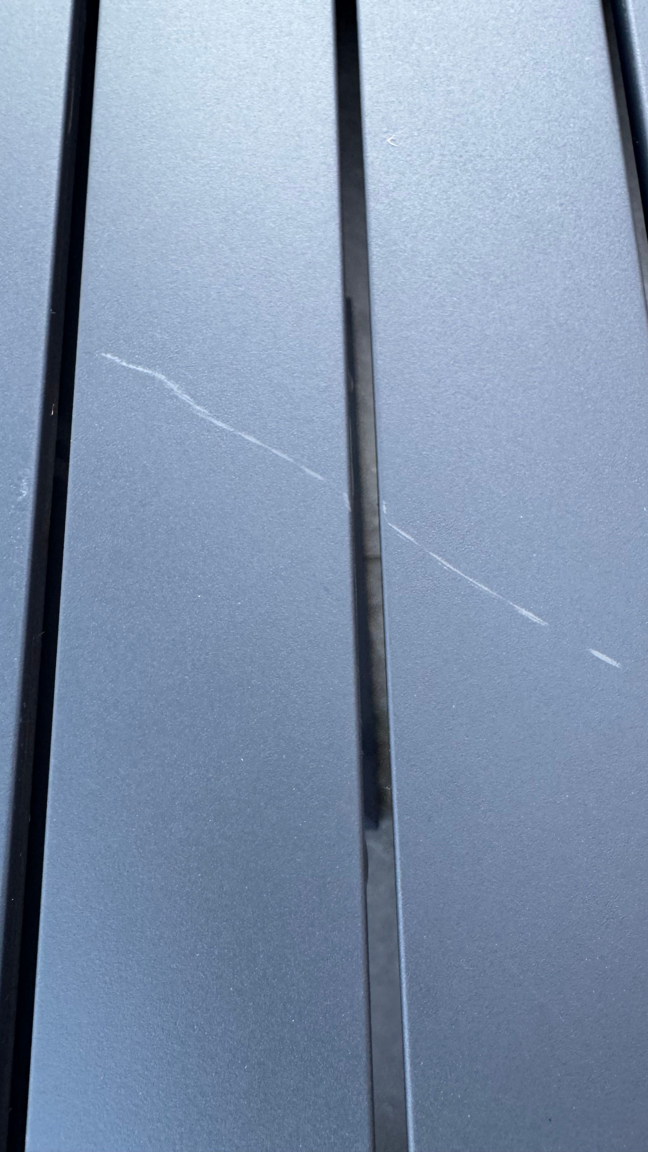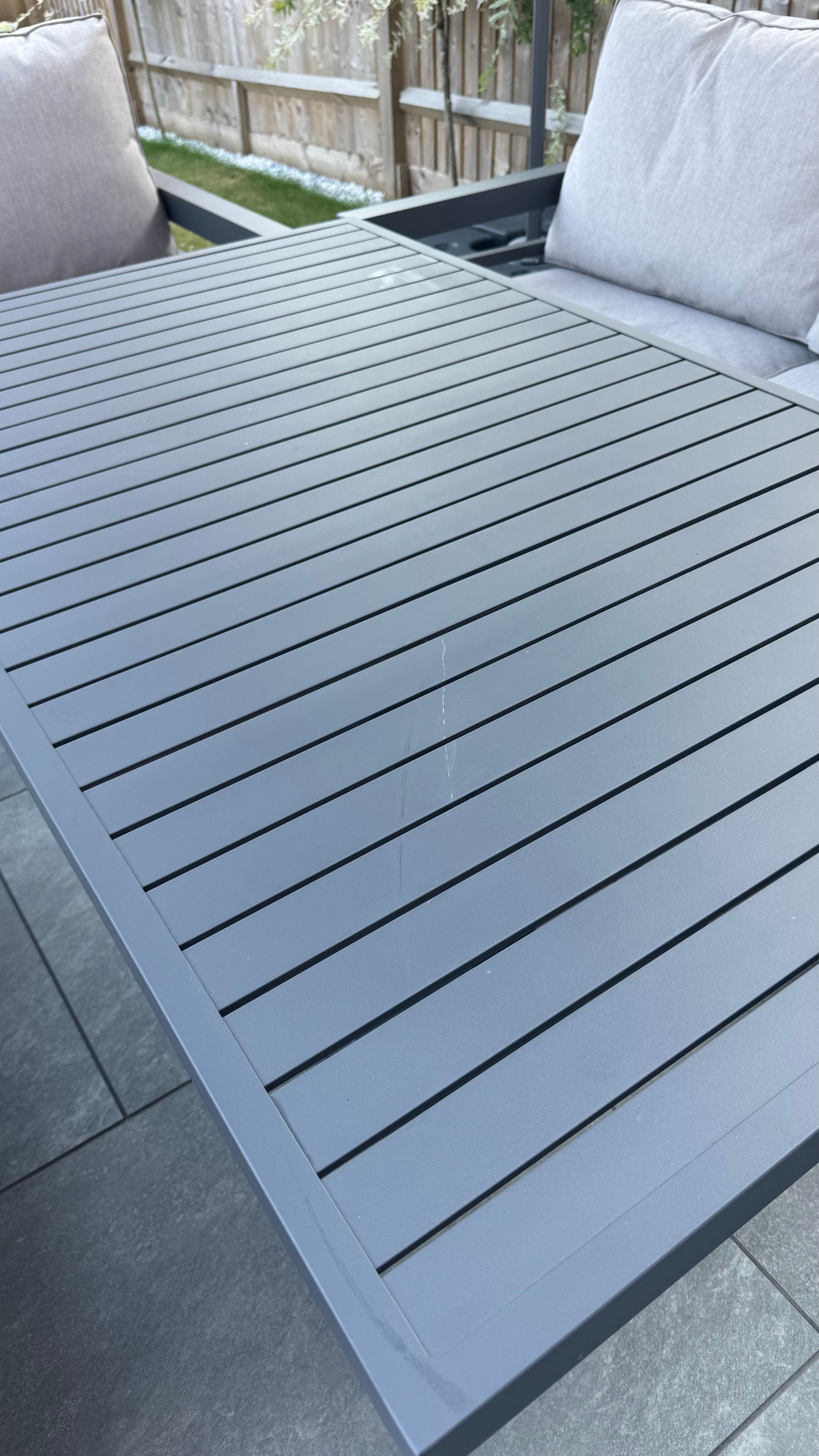 New patio furniture which I think is powder coated of some sort and number 3 son just put a marble heat stand on it and has managed to do this. Ffs!