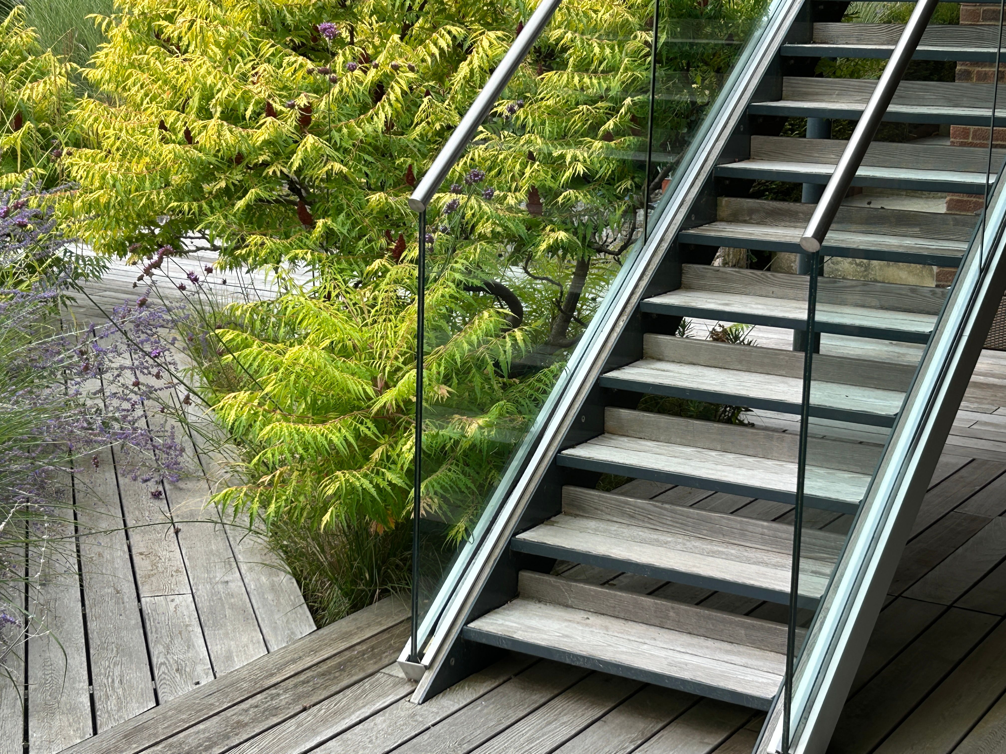 The glass panels were already leaning out when we bought the house and we picked this up as something we would need to pay to rectify. But I had no idea how much it might be! The current balcony structure doesn't seem to have any steel in it - all wood. This wood is rotting. Quite a bit of the decking has warped. So I'd like a complete refurb, ideally with a maintenance free solution.