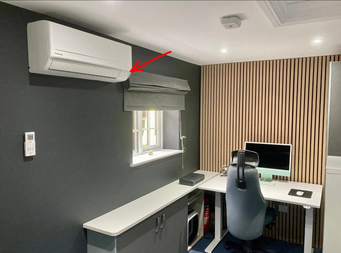 That's puzzling. I am sure it is the same unit in both photos (a regular Panasonic indoor split)...but the top half of the unit has been cut off or skewed in the first picture, as if the pic itself has been 'manipulated' in someway? (If you look at both pics, the bottom of the unit in both pics is aligned roughly with the blind, so there is definitely something odd going on there)
