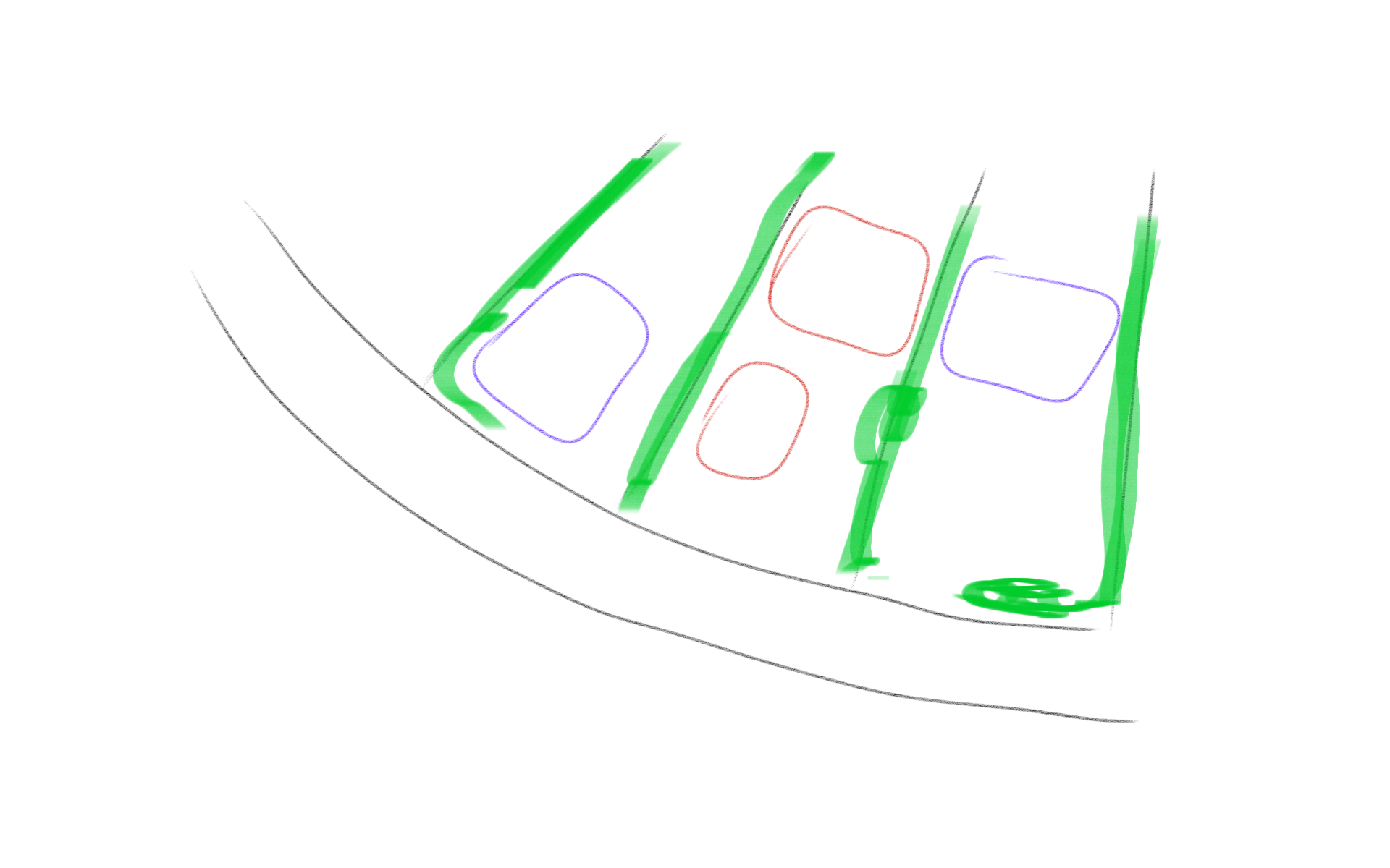 Thanks. It's not to scale, the garage would face inward, doors facing the house, as there would be about 3 car lengths between house and garage.
