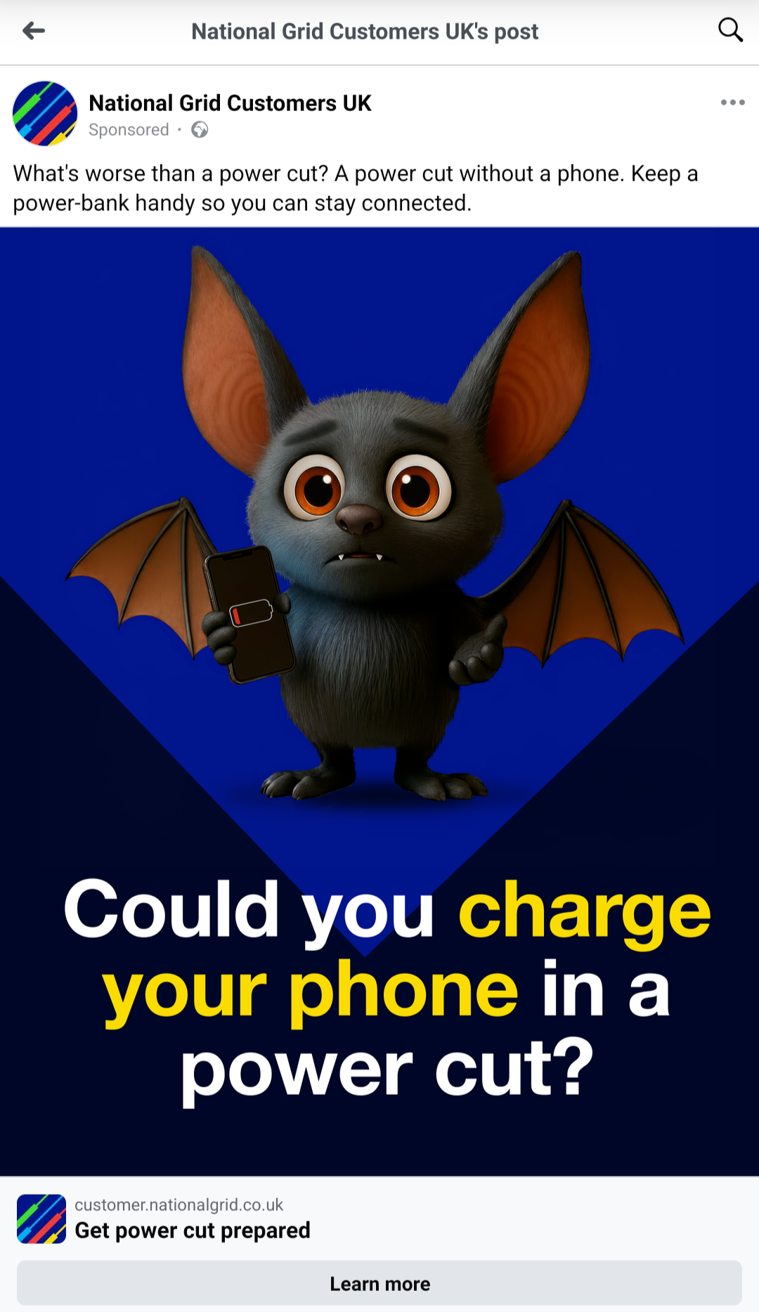 Pretty much this.I'm certainly not a "prepper" or anything vaguely of that mindset but when you look how cheap power banks are and that includes some of the entry level "3 pin plug" ones and you also think how dependent most people are on their mobile phones or the Internet or TV or radio to get information and it makes sense to try to ensure you're doing all you can sensible do to retain access.