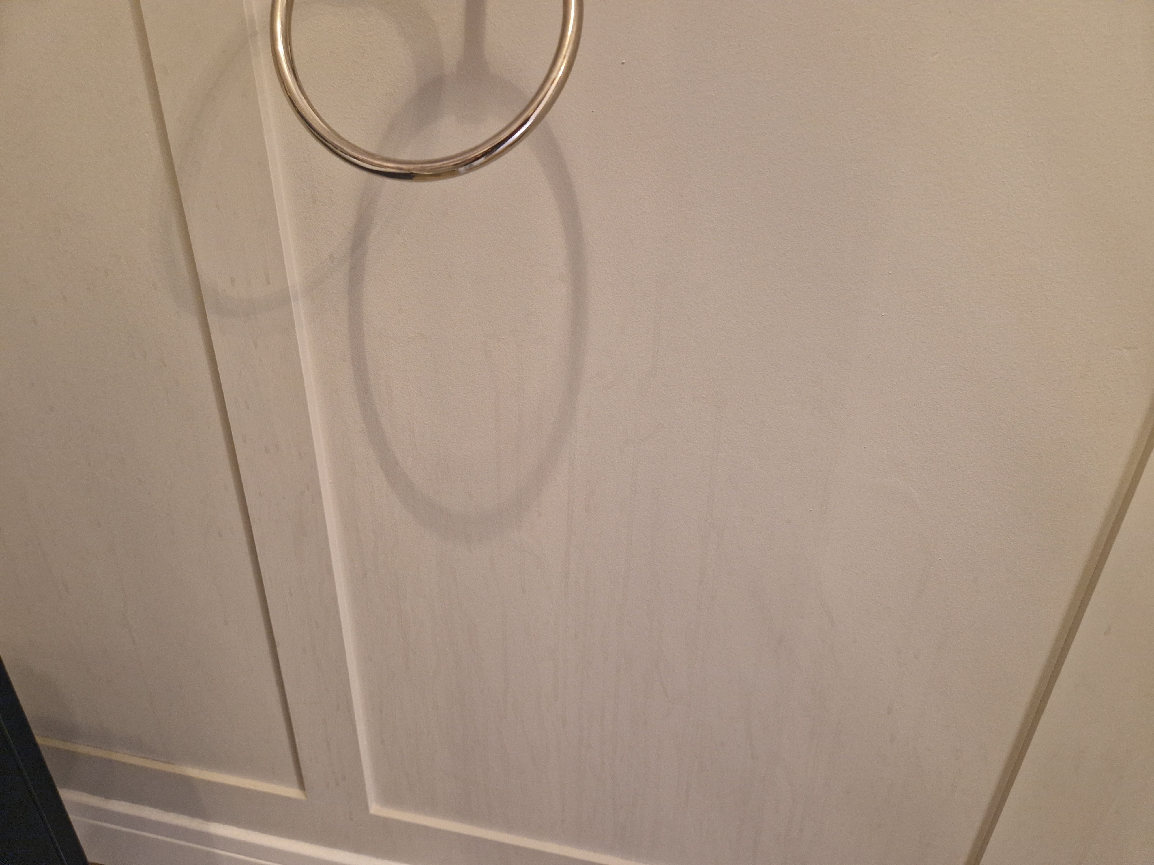 Water dripping off wet hands are leaving water marks on our nice grey walls.