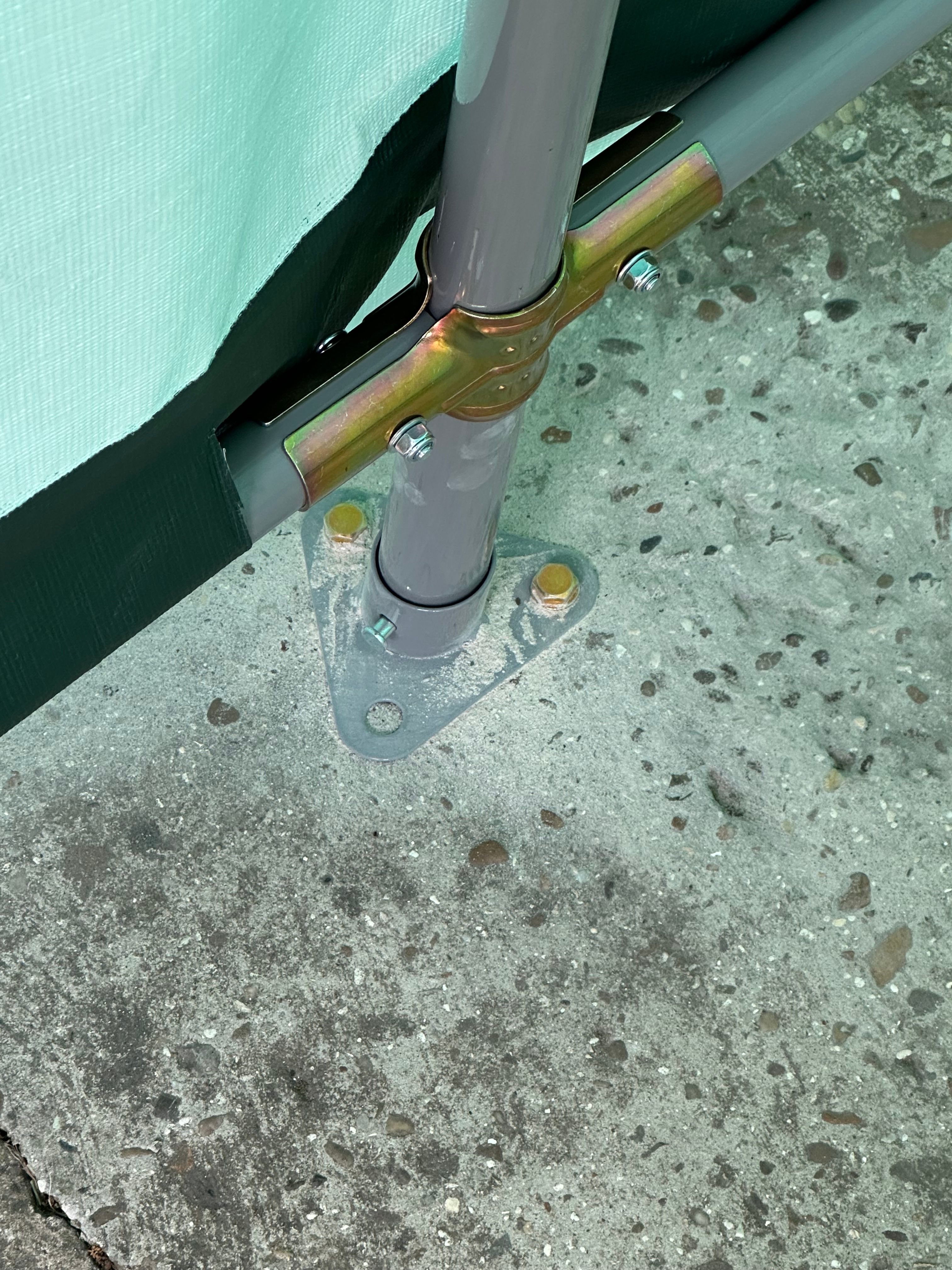 Got bolts into the base. It's Machine Mart, so says comes with anchor bolts as wellThey do a 12foot wide one as well, so nothing could touch the sides...