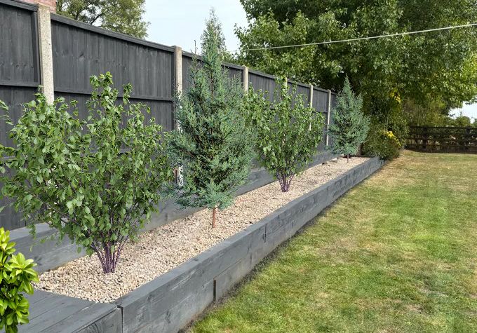 I think it looks very good and, if you try to do anything else, you will spoil it. But a few potted box bushes or something green will make it look super. Buy an irrigation system to look after them.I’ve been out painting my fence today as it was looking a little worse for wear and I have a dilemma on what to do with the gravel boards.