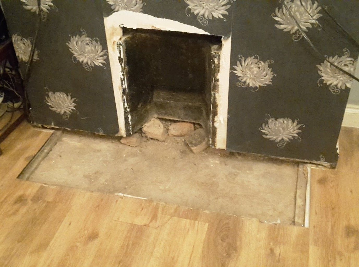 Then you have a hearth and surround, typically tiles backed with vermiculite filled concrete.