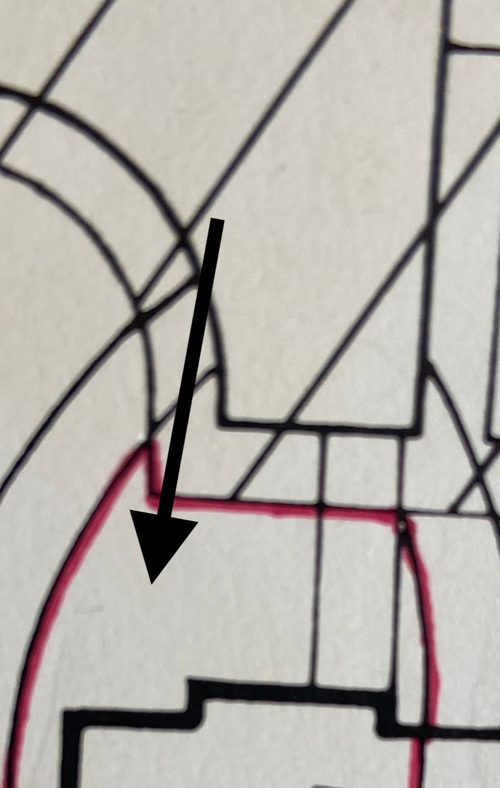 This is a point, I would need to cross a small area of pavement bordering the drop kerb. The red ouline is the edge of my drive, access being from the drop kerb on the right. A tree has been removed on the opposite corner which allows access from the other side by crossing the neighbours kerb and about 2 foot of pavement.What angle of crossing the pavement constitutes 'along the pavement'?