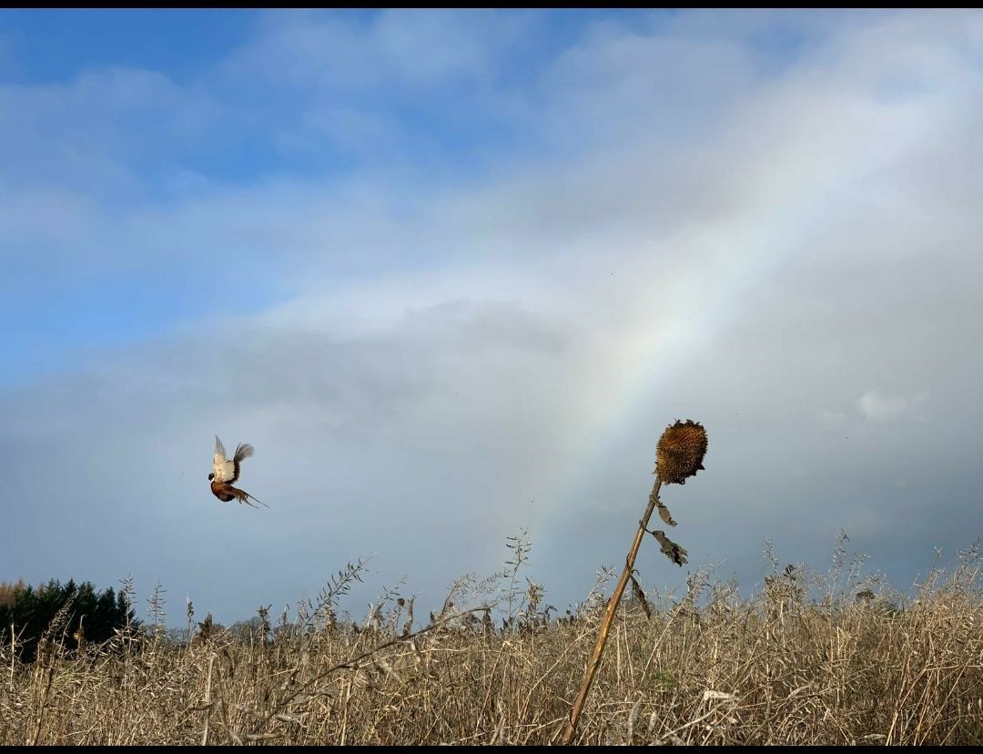 We're on the flight path of a flock of parakeets which fly West each evening, and depending on the sun you can get a wave of iridescent green fly past the window. Also a few of them are usually in the trees a couple of roads away.