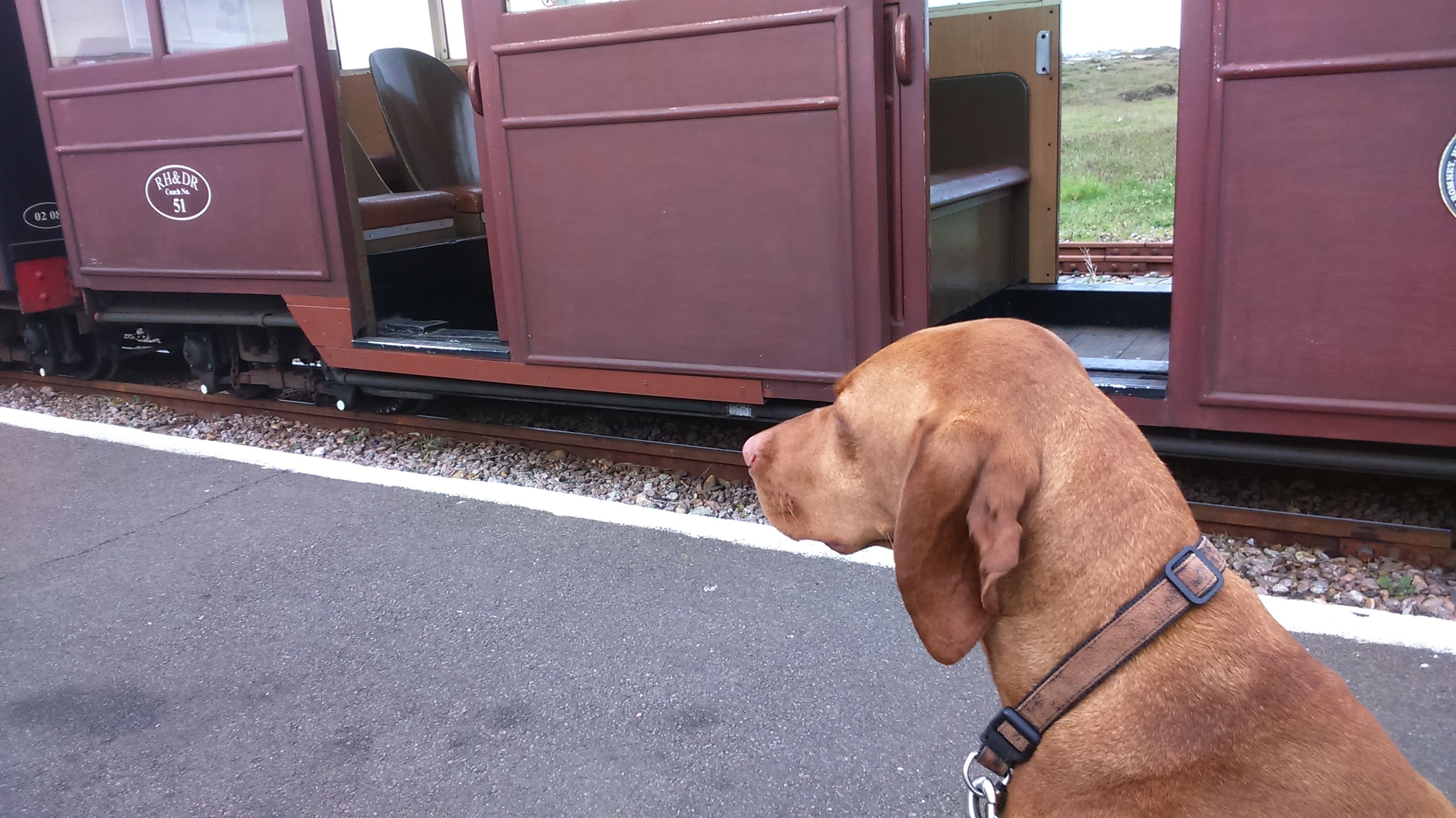 I used to run Barking Mad Ashford and we had hosts who loved Vizlas. They need a host without other dogs and able to cope with active dogs but if not already booked up they should be able to help. Pic is me with Brandy at the Romney and Hythe railway.