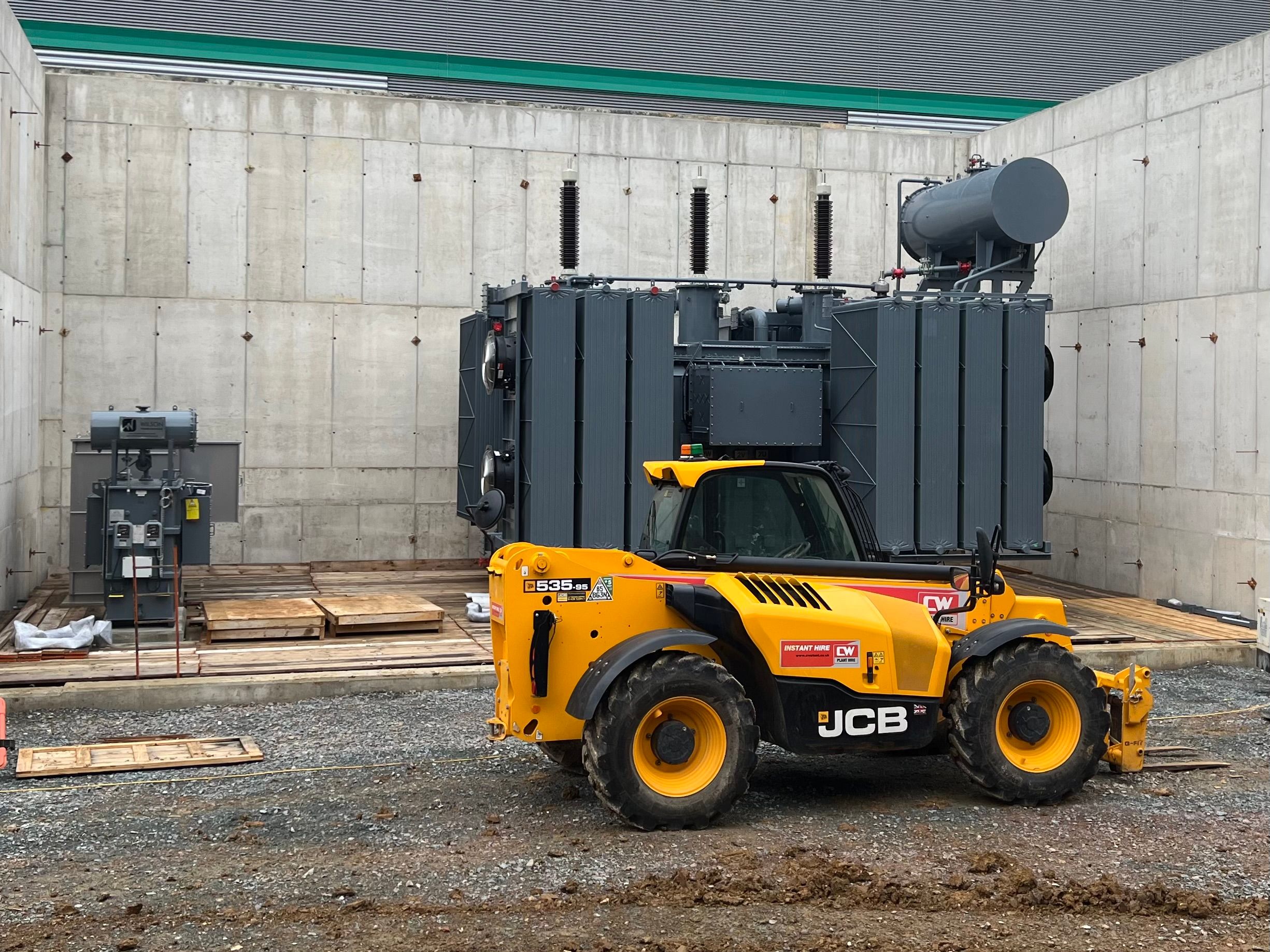 Little one to the left probably down to 400/230 from 11kv big one maybe 66kv to 11kv