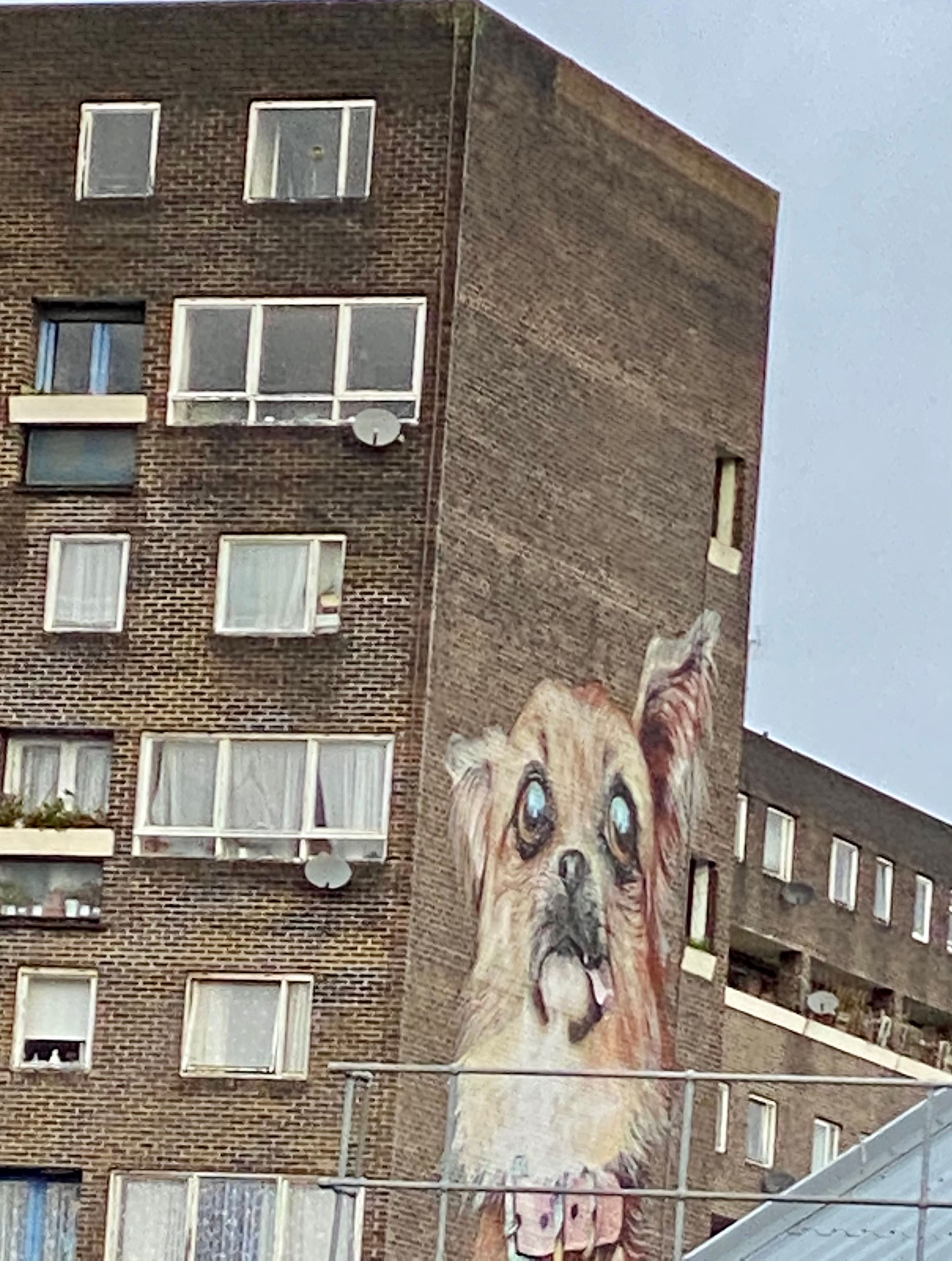 It's on the side of a bar and not a house, but there is the Derry Girls mural in Belfast.