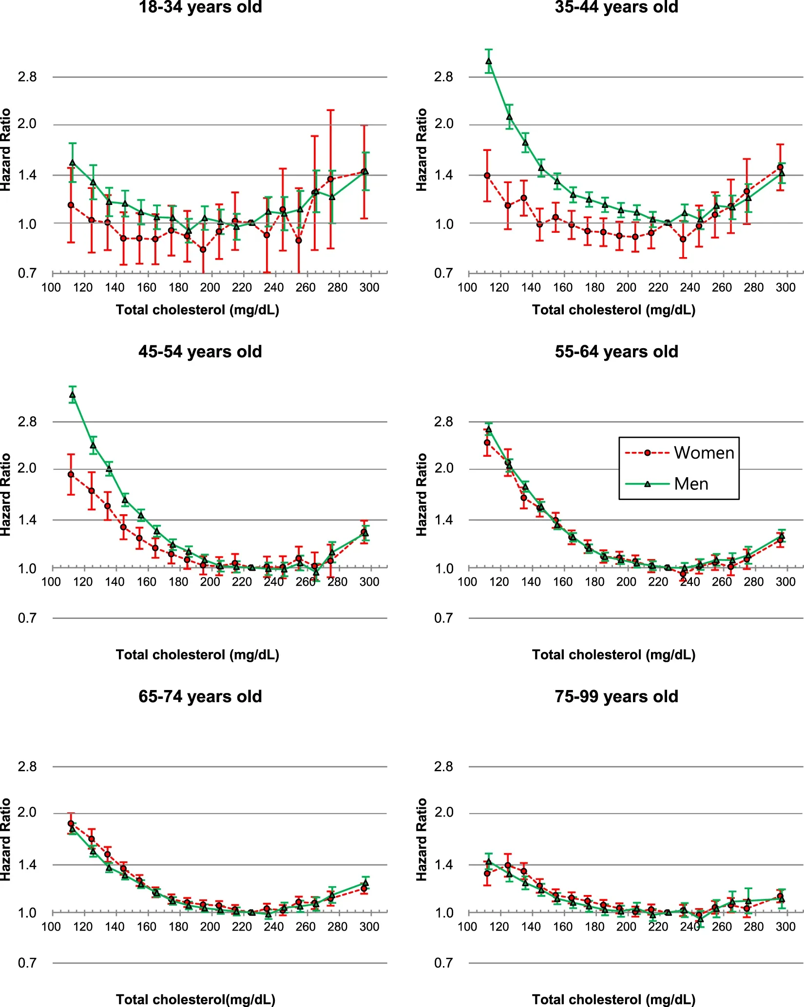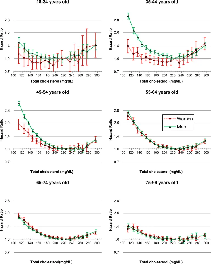 Total cholesterol and all-cause mortality by sex and age: a prospective cohort study among 12.8 million adults