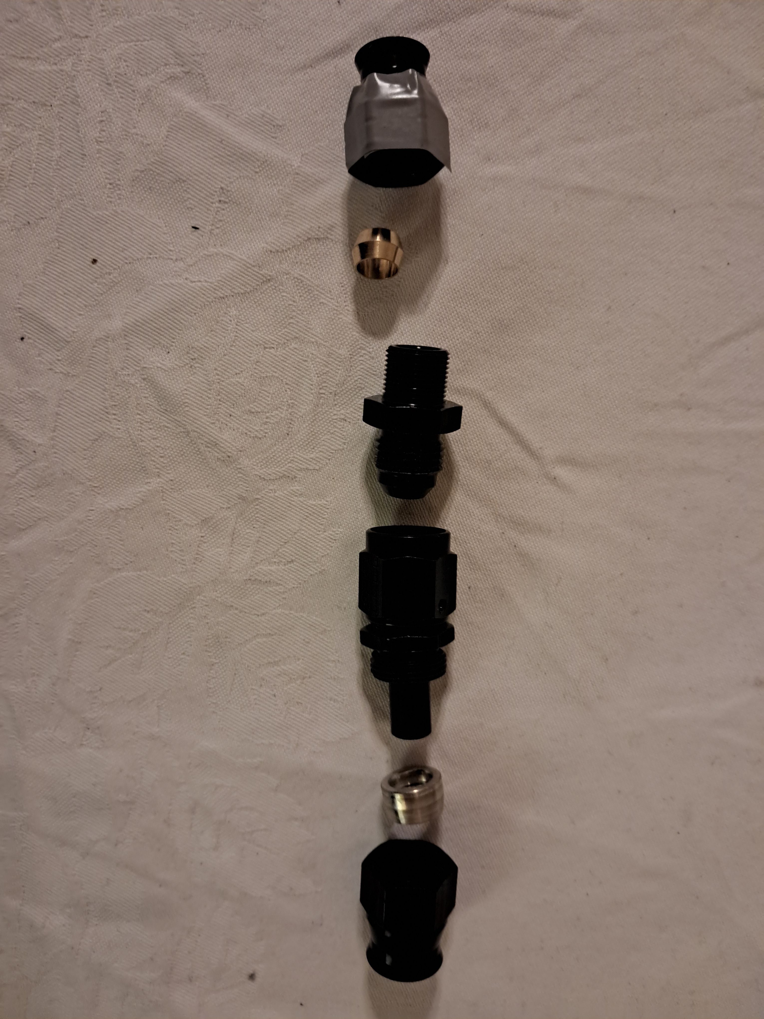 AN fitting, olive and nut for the hose connection.