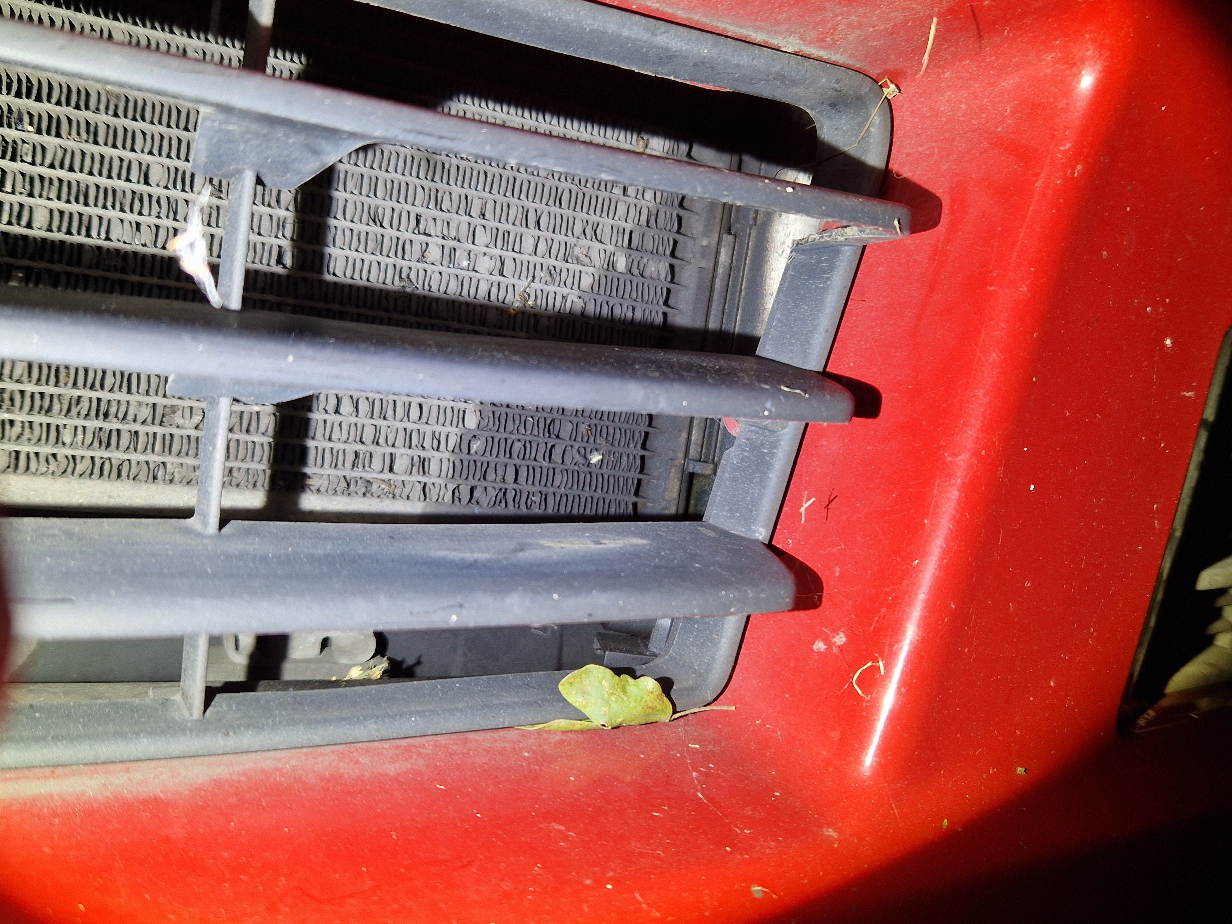 4. with normal light, I can see each lower corner of the condenser has a dark patch. Would this also point towards a leak of refrigerant/oil?