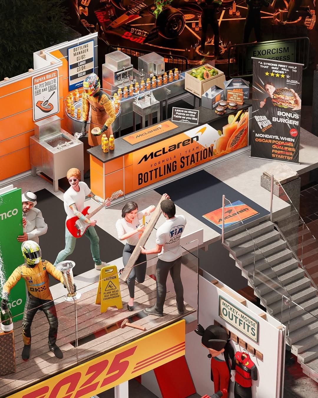 Loved the Ferrari lego build and Mickey Mouse outfits, the engine transplant from an F150 and the McLaren burger / Papaya juice bottling bar.