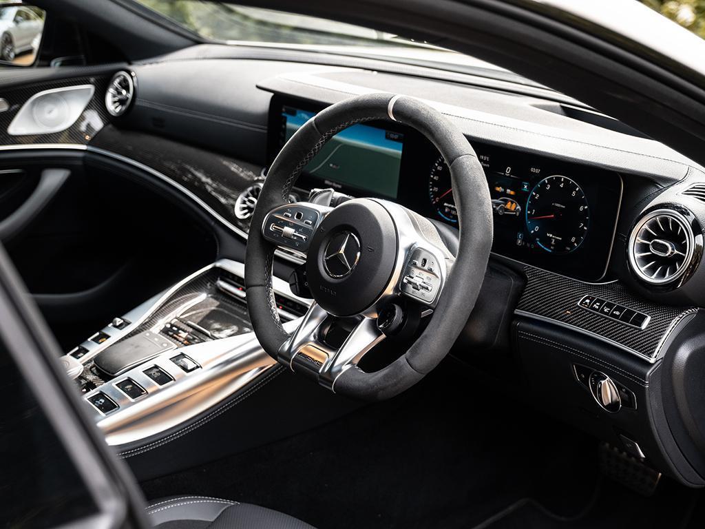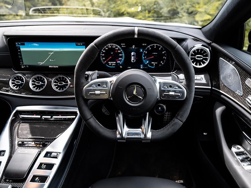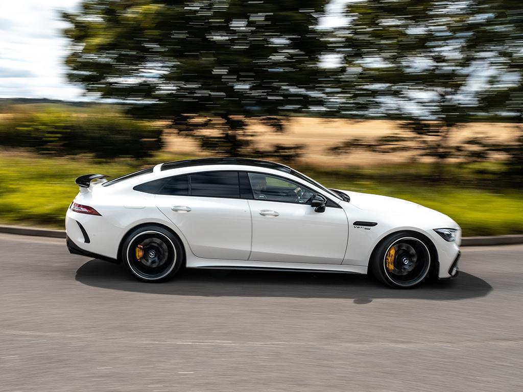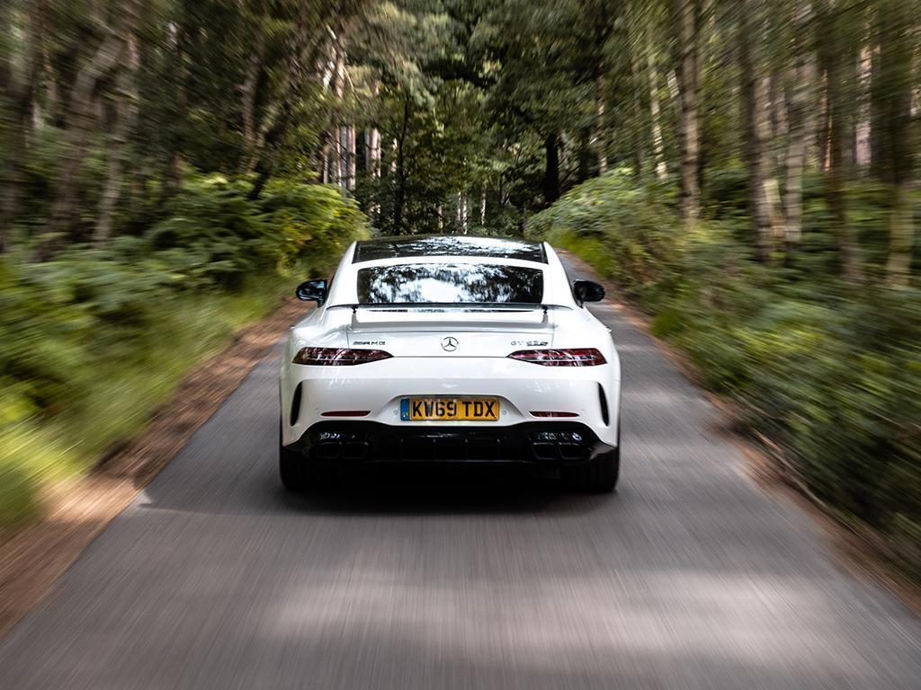 The hot-V V8 does what it's done now for many years: namely, pick up from zip, bully its way through a bountiful mid-range and then cannon into its upper reaches like a boss. Only now, with 639hp and an enormous 664lb ft (a C63 makes 516lb ft, by comparison, and the Audi 590), the GT consumes revs and road like no other AMG four-door, even allowing for its two-tonne kerbweight. It's a monster in the finest mad Mercedes tradition, though ably (and notably) contained by its nine-speed automatic and 4Matic+ chassis.