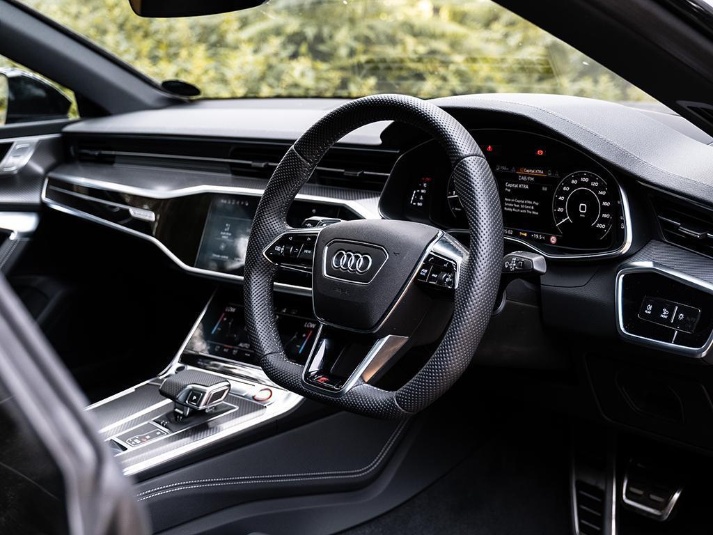 Price: £97,090 (as standard; price as tested £110,520 comprised of Black styling pack for £800, Red brake calipers for £520, Audi music interface in the rear for £175, RS sport exhaust system for £1,450, Panoramic glass sunroof for £1,750, Manual sunblind for rear window for £1,350, 22-inch alloy wheels for £2,000, Black exterior mirror housings and Audi rings for £300, Bang & Olufsen advanced sound system with 3D sound for £6,300.