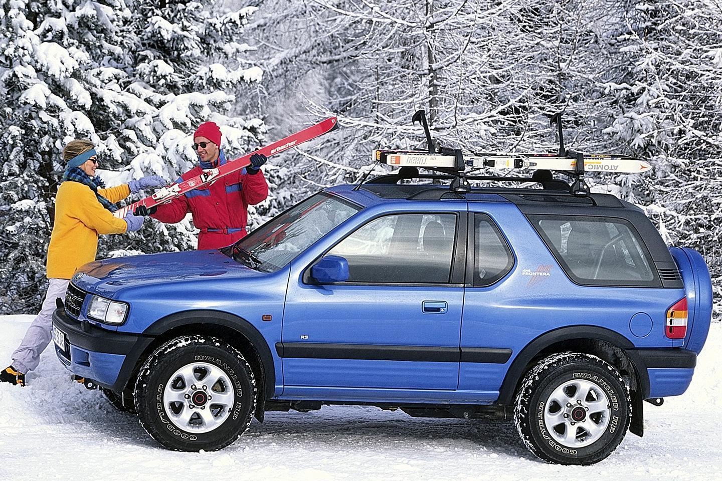 As well as playing precursor to its modern lineup, its maker calls the Frontera a "trendsetter", which is stretching it a bit given the SUV segment's overwhelming triumph is to seem aspirational, a description that precious few Vauxhalls have ever really earned - least of all its paper mache off-roader. But there sure is a lot of active lifestyling going on in these press pics, from skiing to sailing, which is exactly the leisure dream sold by contemporary SUVs now. And if not a full cabrio in the Evoque or T-Roc sense, then the soft top Frontera previewed an appetite that was about to flourish.