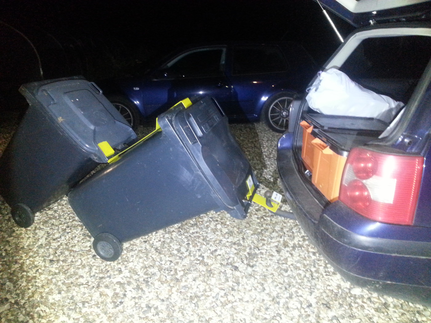Someone on here told the tale of hooking the bins behind his car,