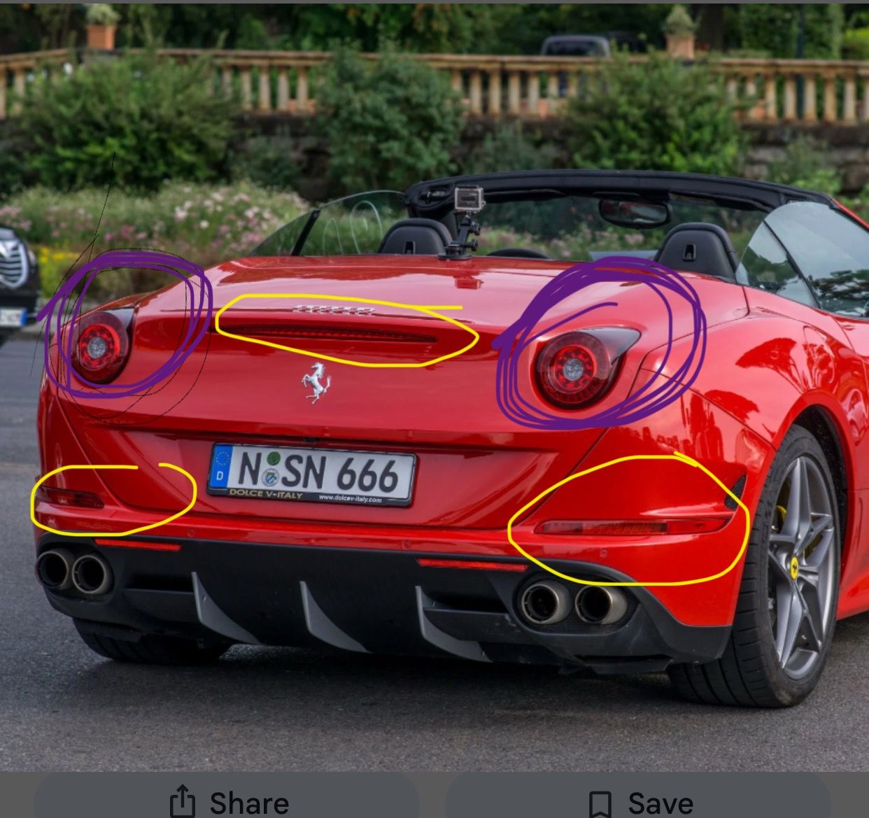 Taking a stock photo from the web - currently my car brake lights are those circled in yellow, there is a modification you can do to the wiring to make the two lights which are circled in purple to also come on as brake lights.
