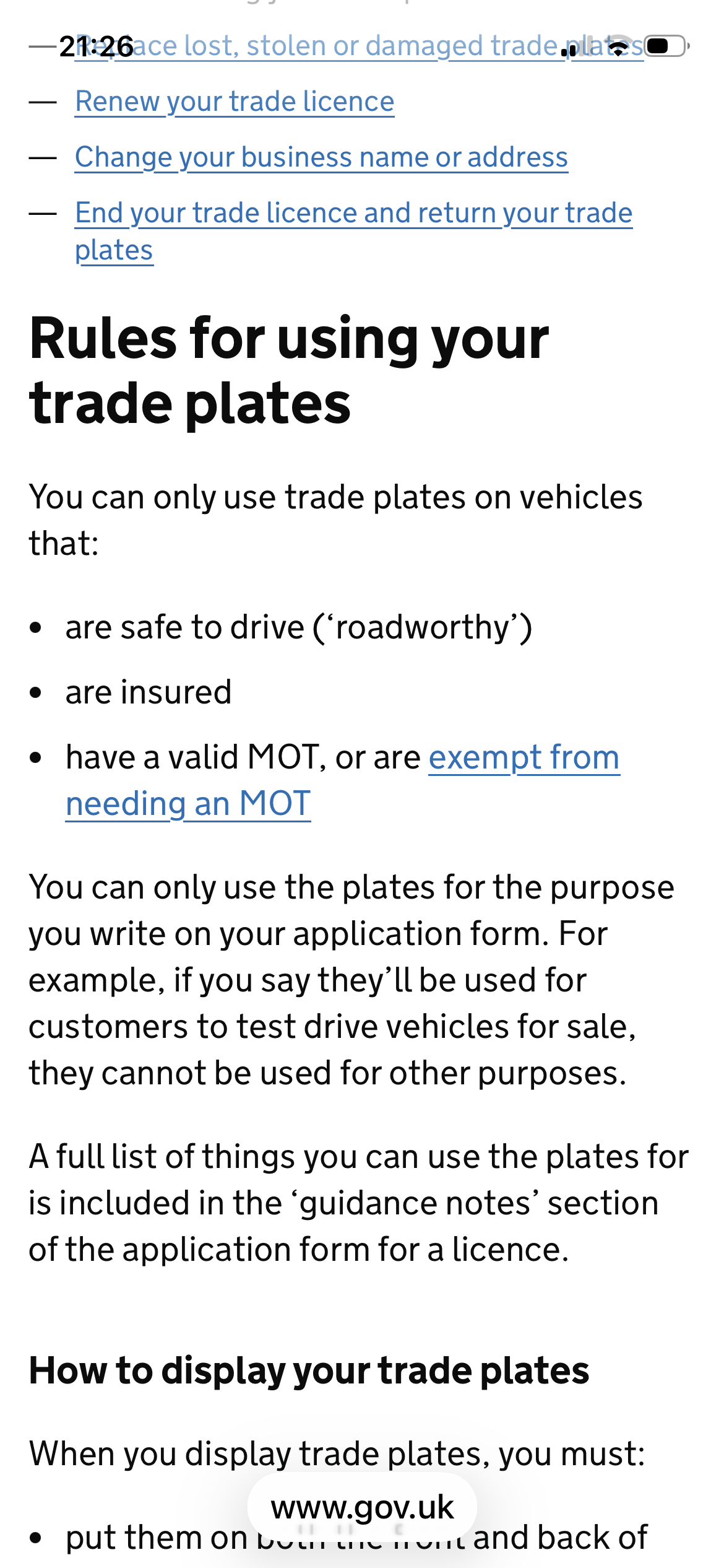 There is also a an offence of failing to display the trade plate correctly