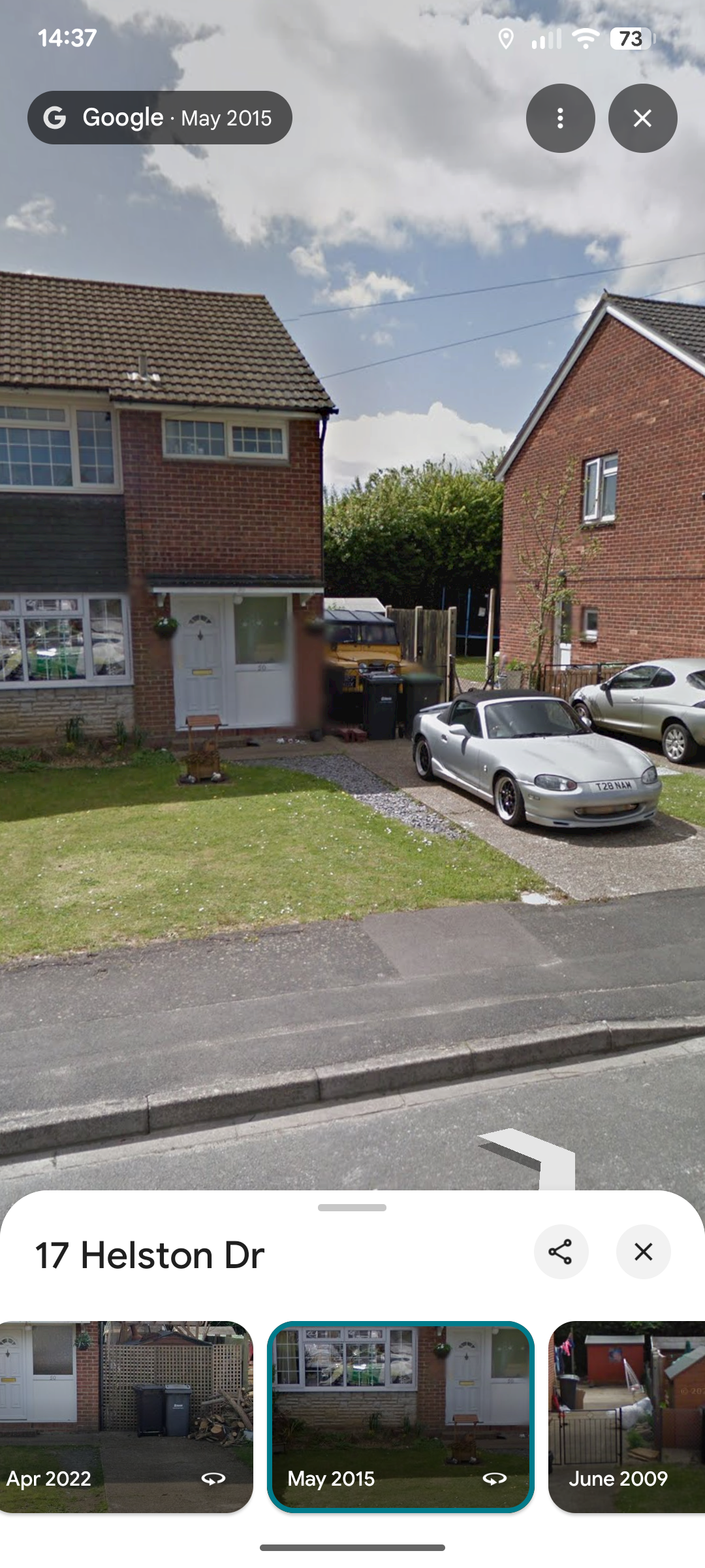 Our older Fiesta shows on street view in 2009 (on the move) and also 2012, 2014, 2015, 2019 and 2022 (parked) when it lived on the street; the last image must have been taken days before it was written off. It's replacement shows in 2023 but is unlikely to feature again as it now takes the place of my A8 outside our garage.