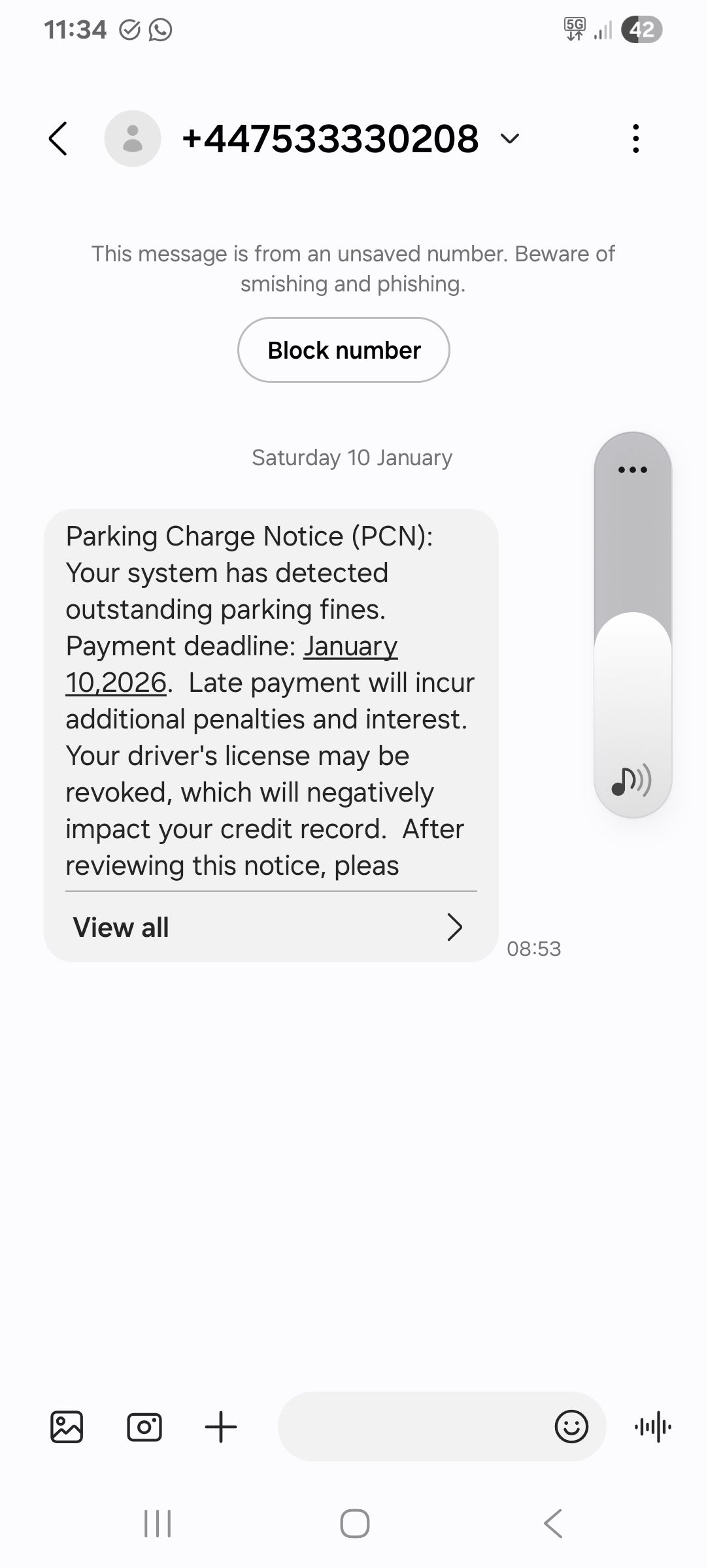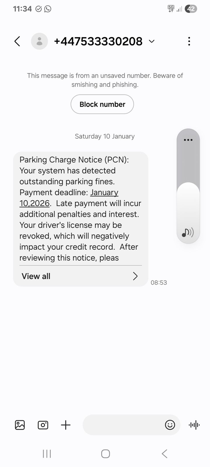 PCN scam text messages