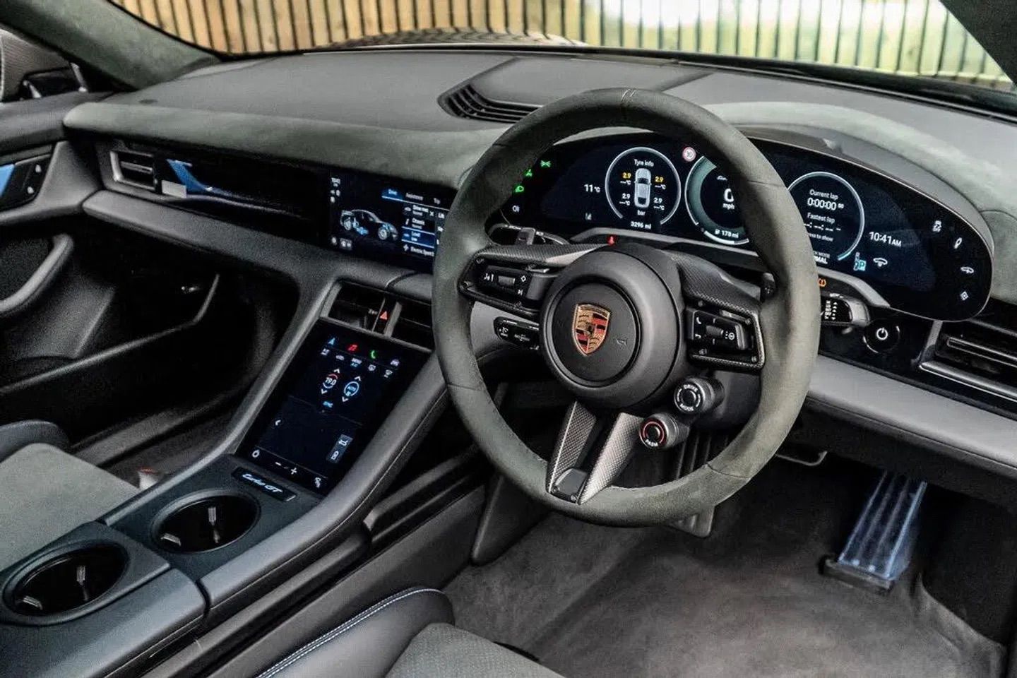 You don’t need us to tell you, though, that not many have sold. Exactly because it’s a niche prospect, and because pricey EVs really aren’t flavour of the month right now. So this one is especially intriguing. It’s a Weissach-packed car, which costs the same as standard but drops 70kg with the missing rear seats and produces 220kg of downforce thanks in part to that fixed rear wing. It also absolutely nails the Porsche GT car stance, low and motorsport-like that makes it immediately different to any other Taycan.