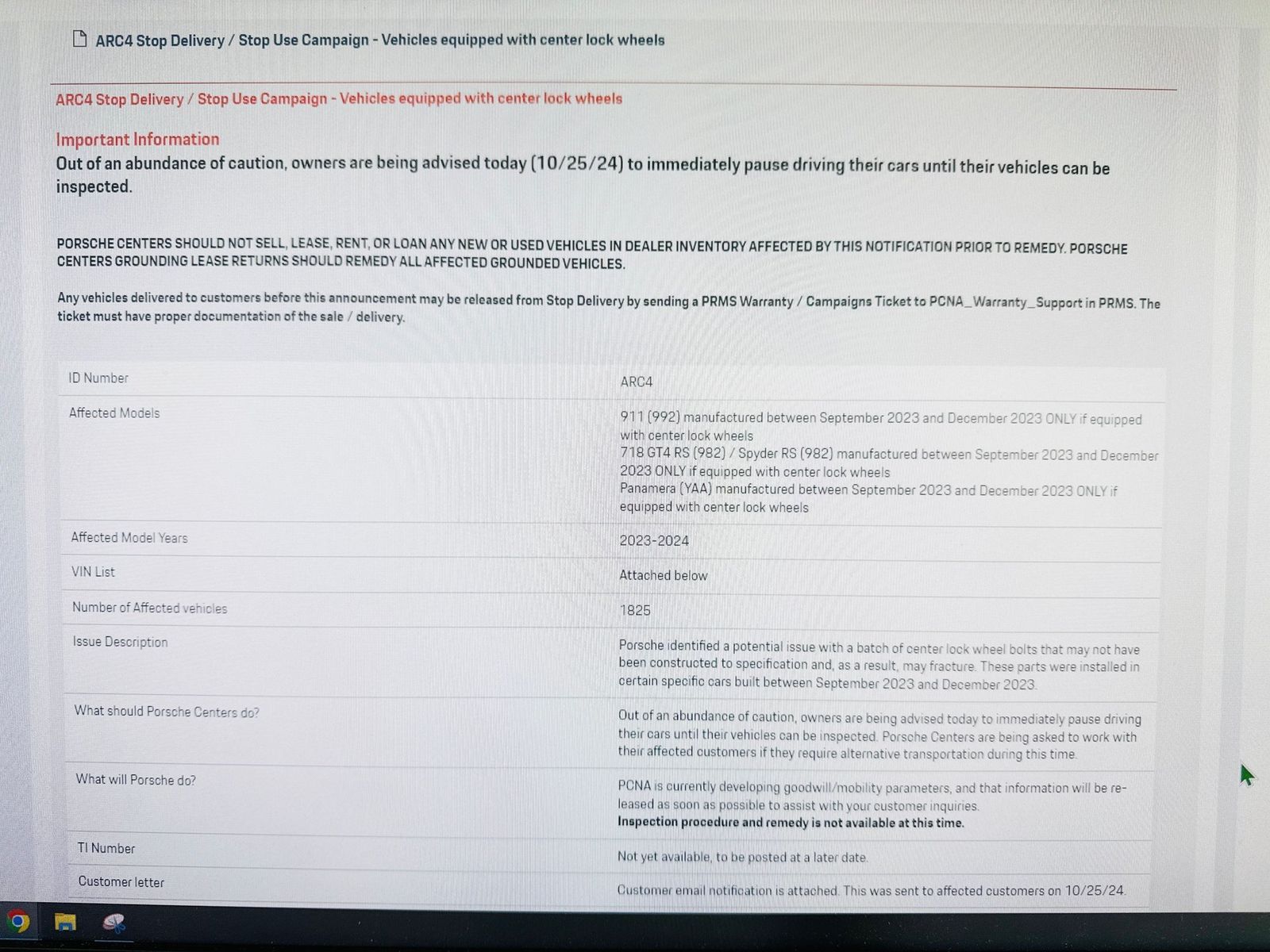 It's becoming quite serious it seems with estimated remediation from Porsche expected to be by (Feb) Spring 2025.