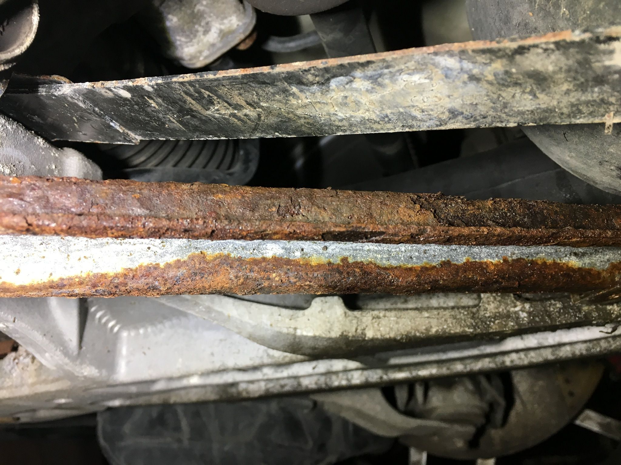 Also remove the rearmost belly pan and clean up and treat the 2 cross members at the back. They will already be rusty but are strong so can just be cleaned up.