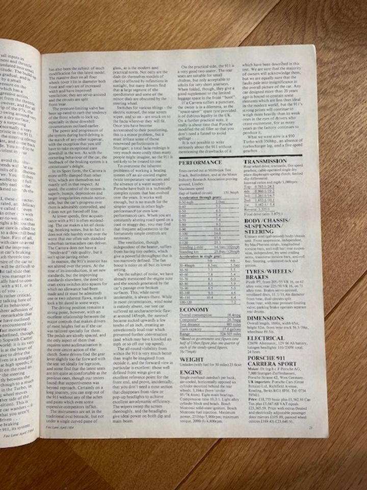I'm sure I have the Evo mag in the loft. I'll take a look and see if I can dig it out. Here's another road test from' Fast Lane' April 1984, and an original Porsche Service information sheet.