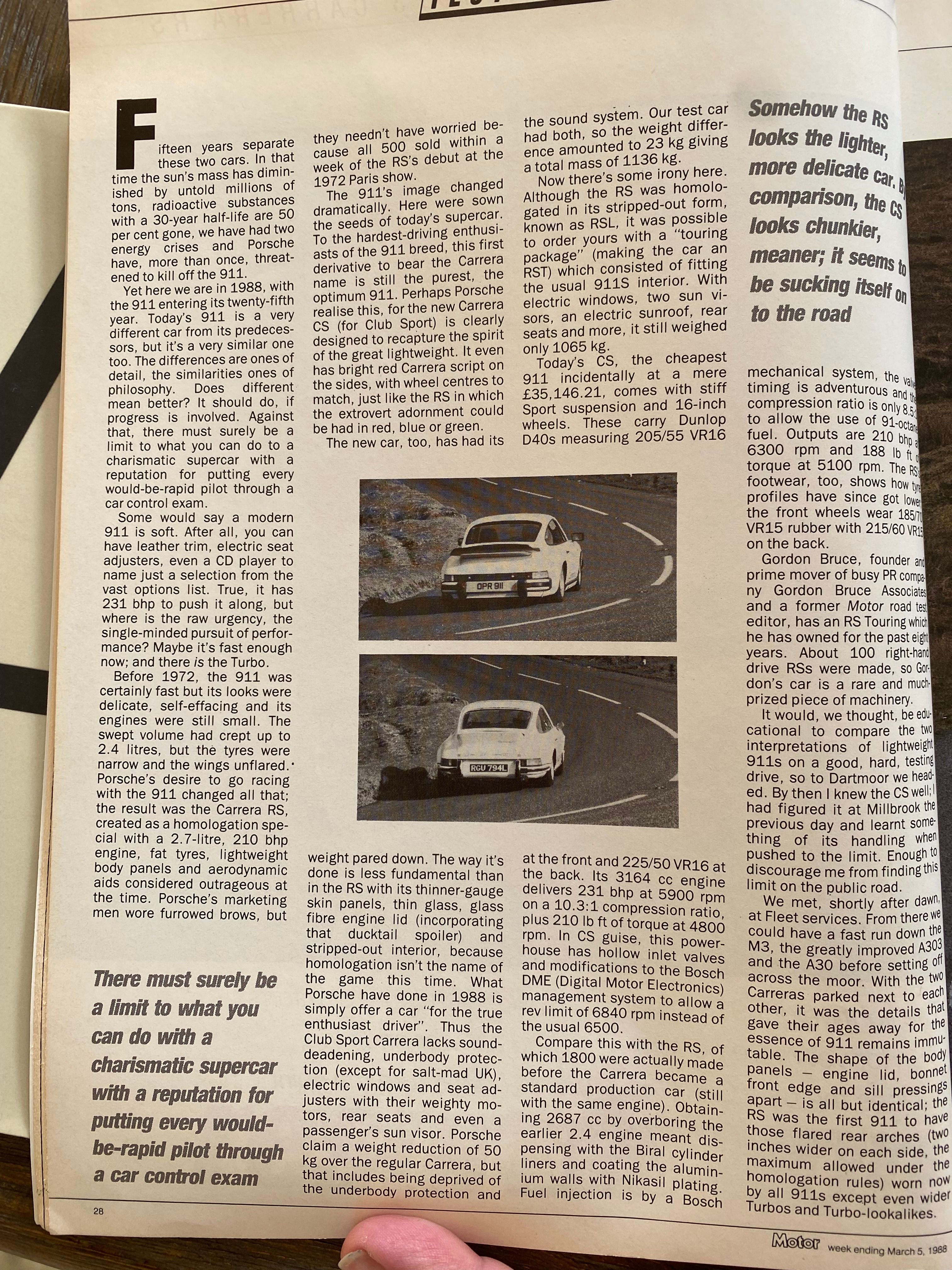 Can anyone help me locate period road test reviews of the 1988 Porsche 911 Clubsport? I’m sure Autocar etc would have covered the car extensively when it was launched but I’m having trouble finding anything online. Many thanks!
