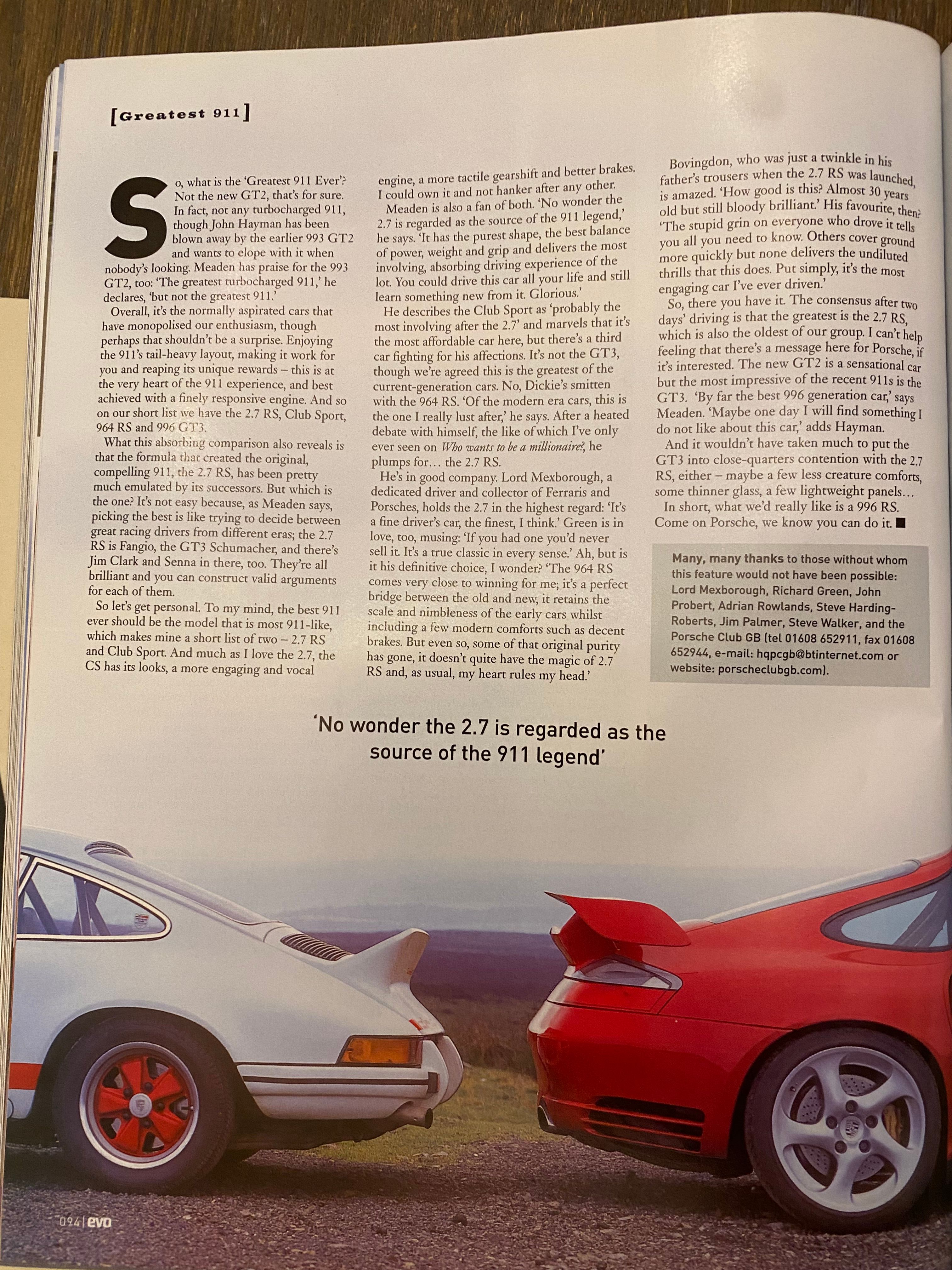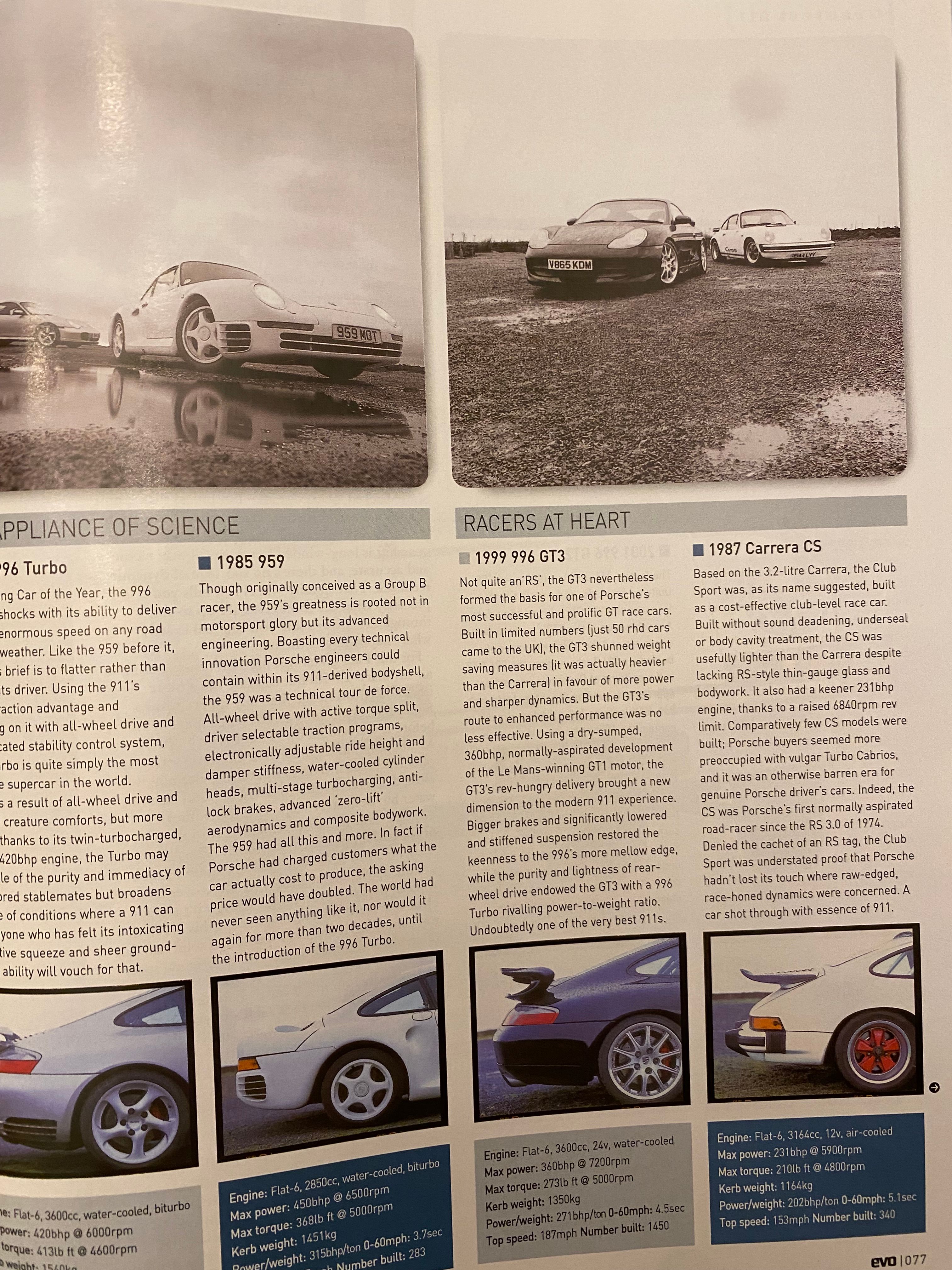 Thanks 'Seawise', what a great read. Does anyone have Evo magazine #36? I beleive a CS features in the 'ultimate 911 supertest' article?