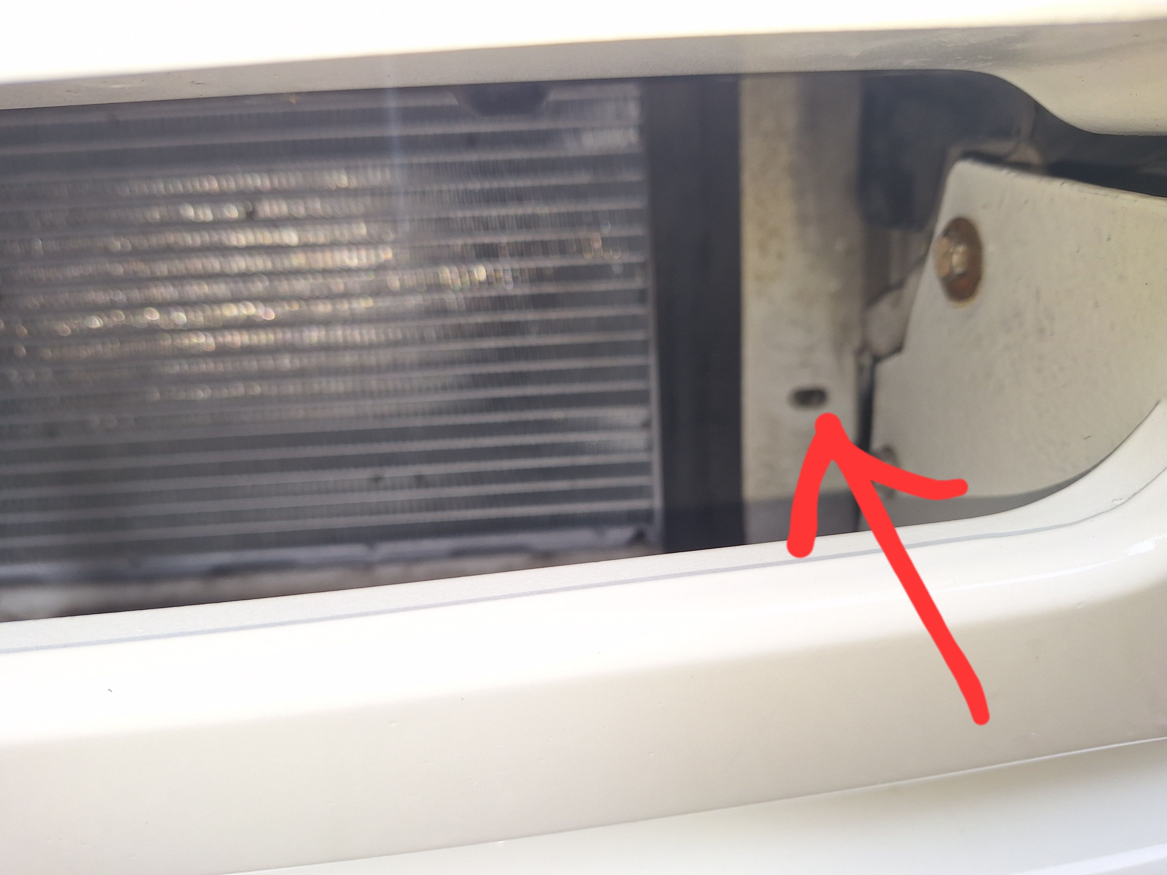 My 944 is missing its radiator grill so I've acquired one from a breaker's yard. I'm pretty sure it's the right part but I'm not sure how to fit it. It's not wide enough (by about 50mm) to bolt directly into what I guess are the mounting holes (roughly indicated on the first pic, detail in the second pic). I'm thinking there must be some brackets missing, but before I start fabricating some (or using zipties), are there any 944 owners here who can advise or send pics of how theirs are attached?