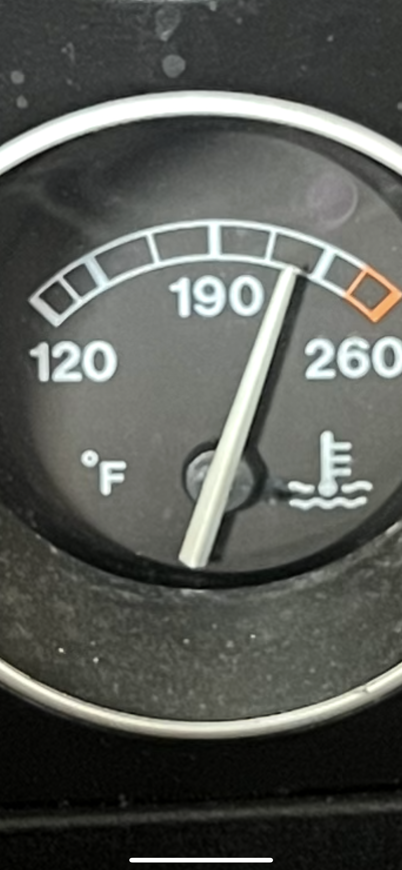 Unfortunately I got caught in roadworks round the corner from my house, I noticed the left hand fan didn’t come on when it usually does and the gauge went ever so slightly over 190 just as I got moving again, when I parked up at home the gauge rose to as pictured, this was the max it got to.