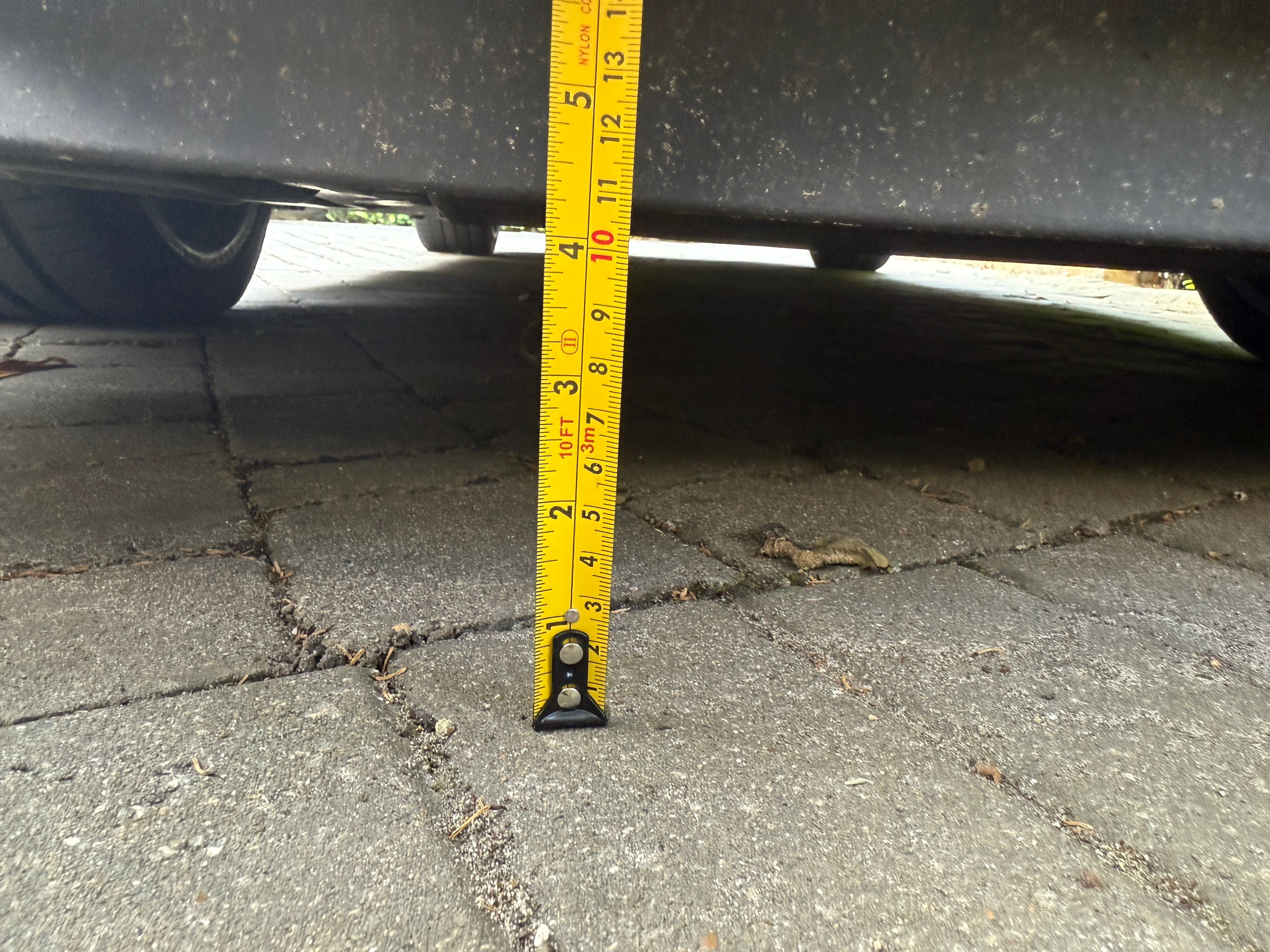 Thanks a lot for following up and taking the time to check these measurements. The car I’m looking at is this The front spoiler bottom edges (carbon on mine) are 122mm from the ground. The front tyre centre to this point is c900mm. I.e. quite a significant overhang increase over your BMW. I’ll let you do the trigonometry.