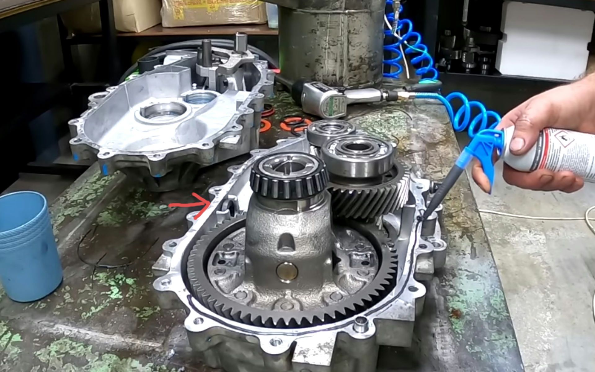 The Kona reduction gear internals, the red arrow points to the oem magnet pocket .