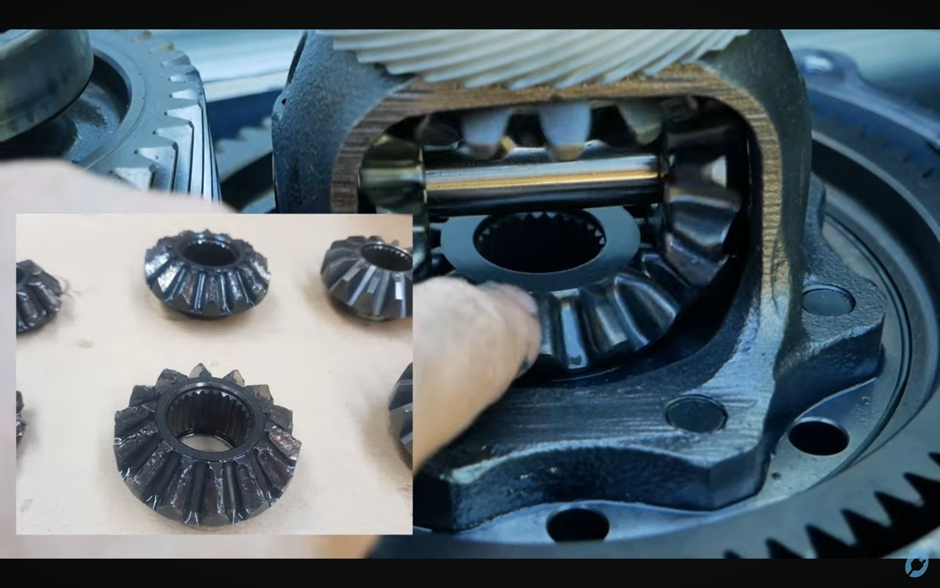 I made a huge error when replacing the driveshafts. I'd pulled the first one intending to secure the diff cage with a wooden dowel but got called in to the phone. Came back out and pulled the second. Yup, the cage rotated and dropped one of the gears into the casing. b