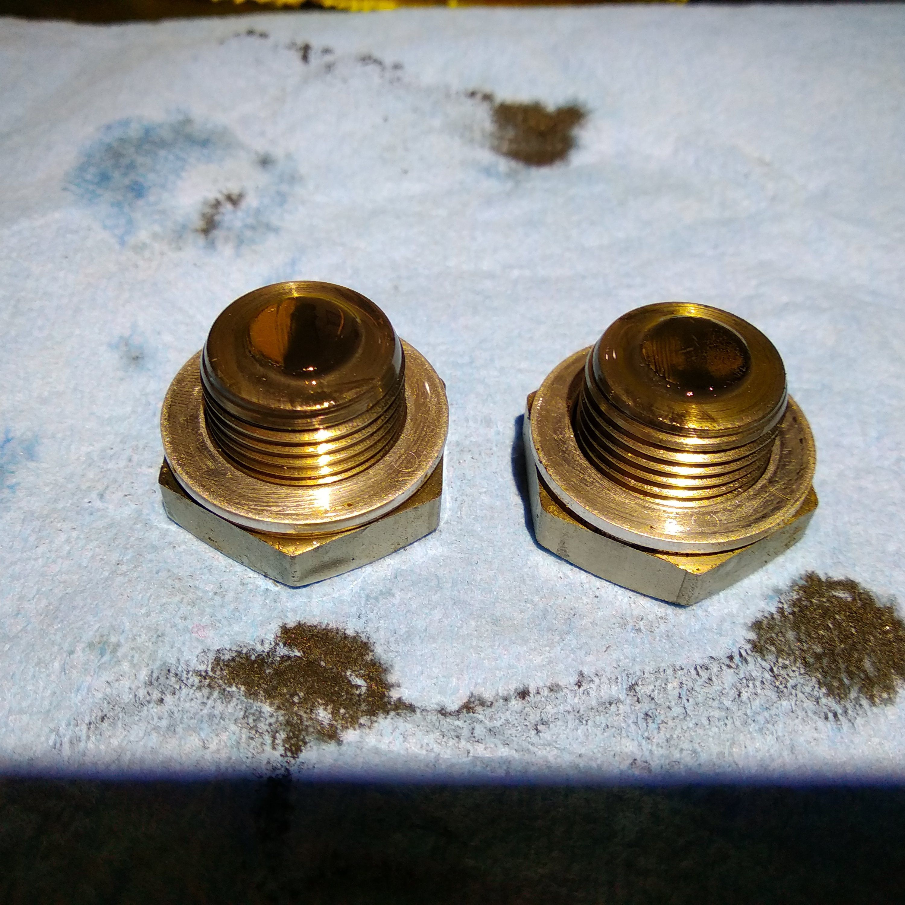 The oil in the jug looks just as black but was obviously less so as it flowed out. Not much in the way of metallic contamination on either plug so there was possibly little point in also replacing the fill plug.