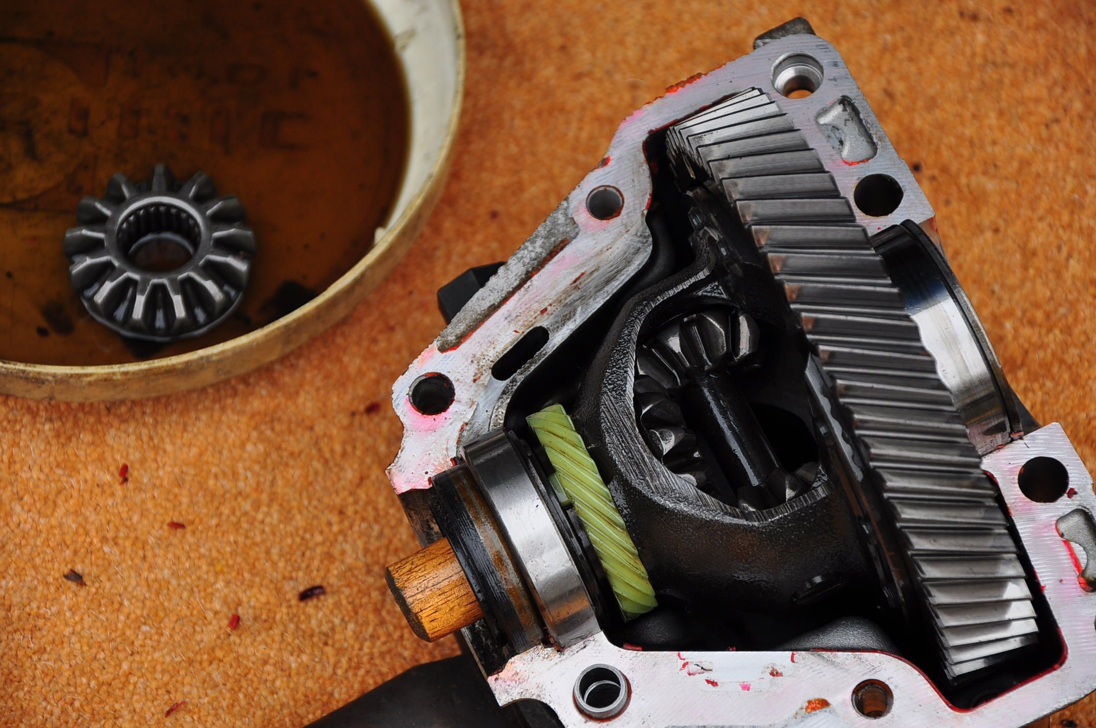 A Nissan Leaf differential, as it should be, and chewed to bits.