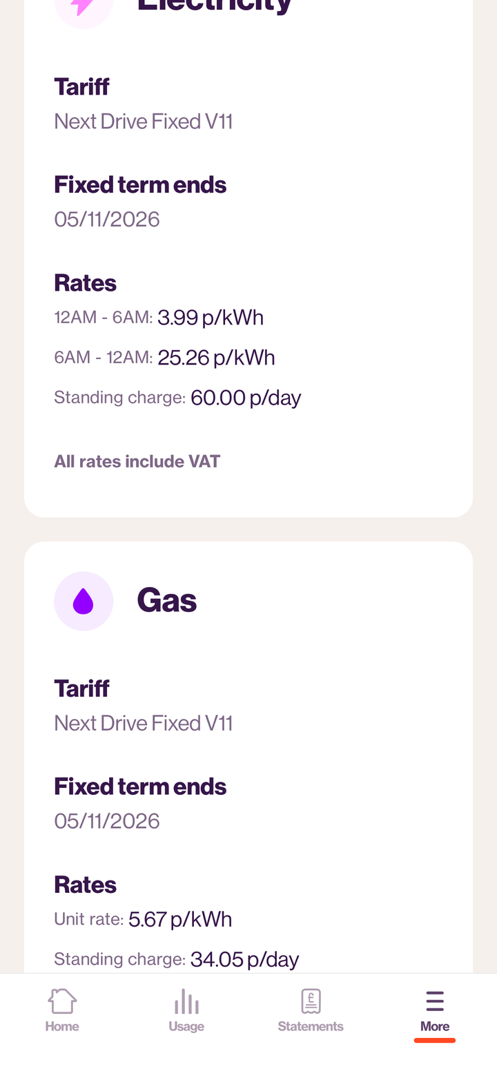 Unfortunately, it'll only be until 15th May when my fixed rate term ends. It's 9p per kWh from then for 6 hrs a night, but I was paying that 2 yrs ago with Octopus for only 4 hrs a night. Standing charge now 53.15p, 60p from 15/05/26. I've looked elsewhere, not really worth switching.
