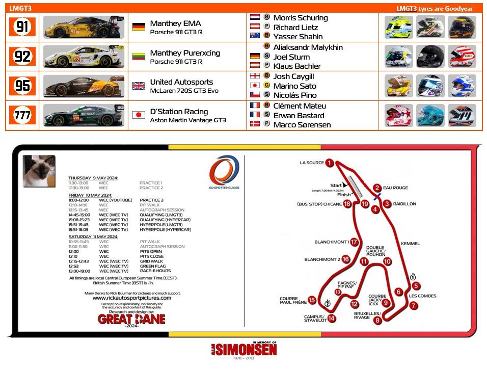 My ‘Spotter Guide’ is for the 6-hour race which takes place on Saturday (11 May).
