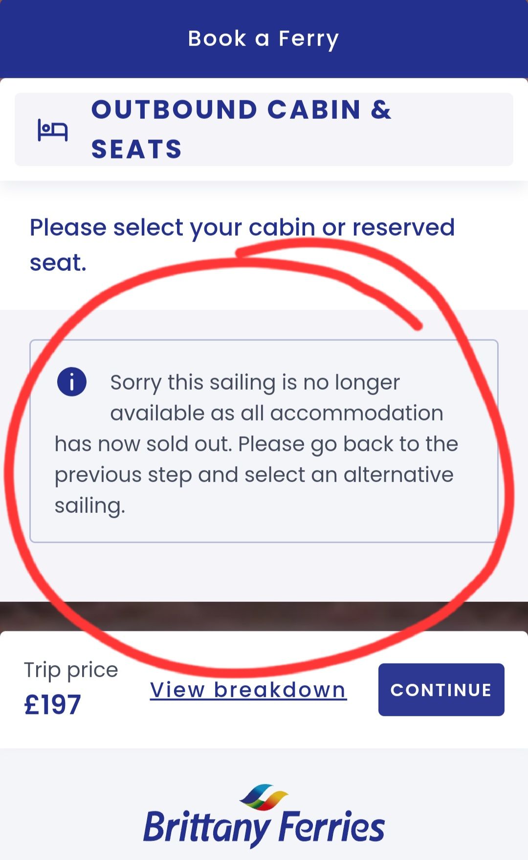 The seats and cabins are just extras you do not have to book, don't select any and just click continue. There will be plenty of non-allocated seating available.Anyone else have an issue with the Brittany Ferries site - thinking of getting a ferry to LM and back.