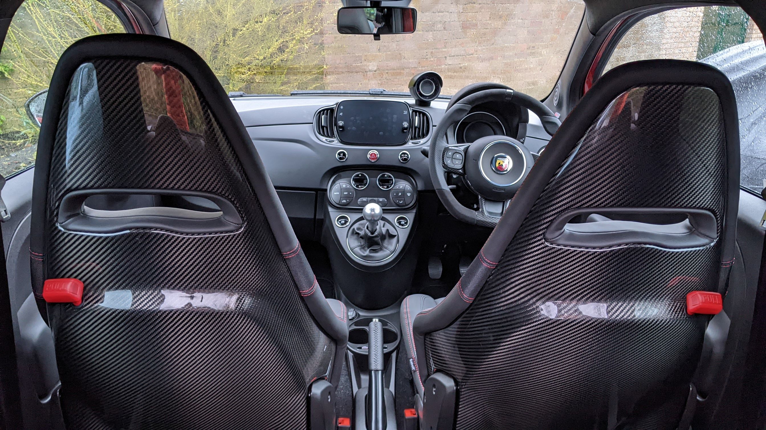 Nice. I have a Panda 100hp and have considering getting those seats put in.It's just a Fiat 500 inside but the alcantara and leather steering wheel, dark cloth interior, alcantara instrument binnacle and the Sabelts seats just makes it so much more classy than the Fiat 500 Hybrid that I was in for a few weeks before.