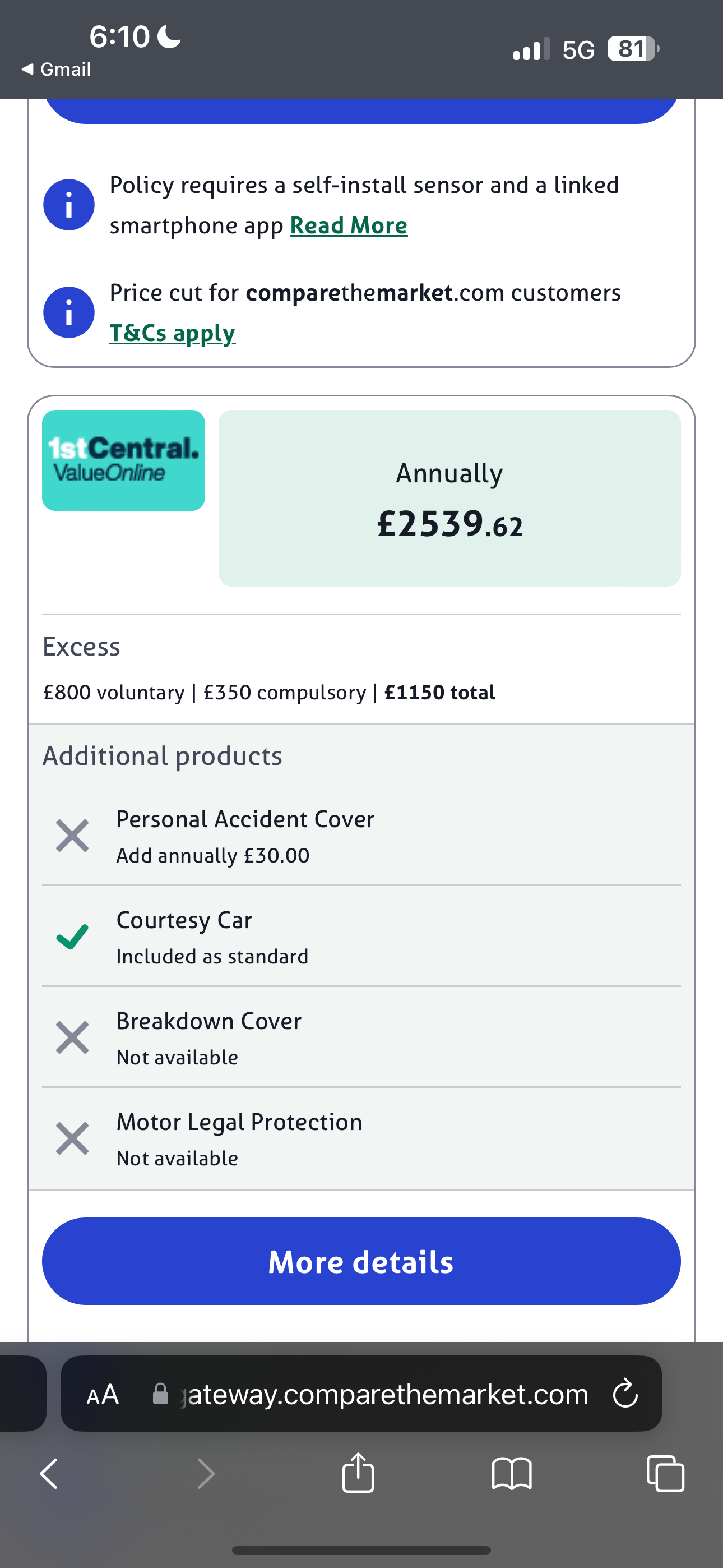 What was the claim for? Can you get a salary sacrifice with work? They normally include the insurance. Or one of those all in for £1k Volvo deals?