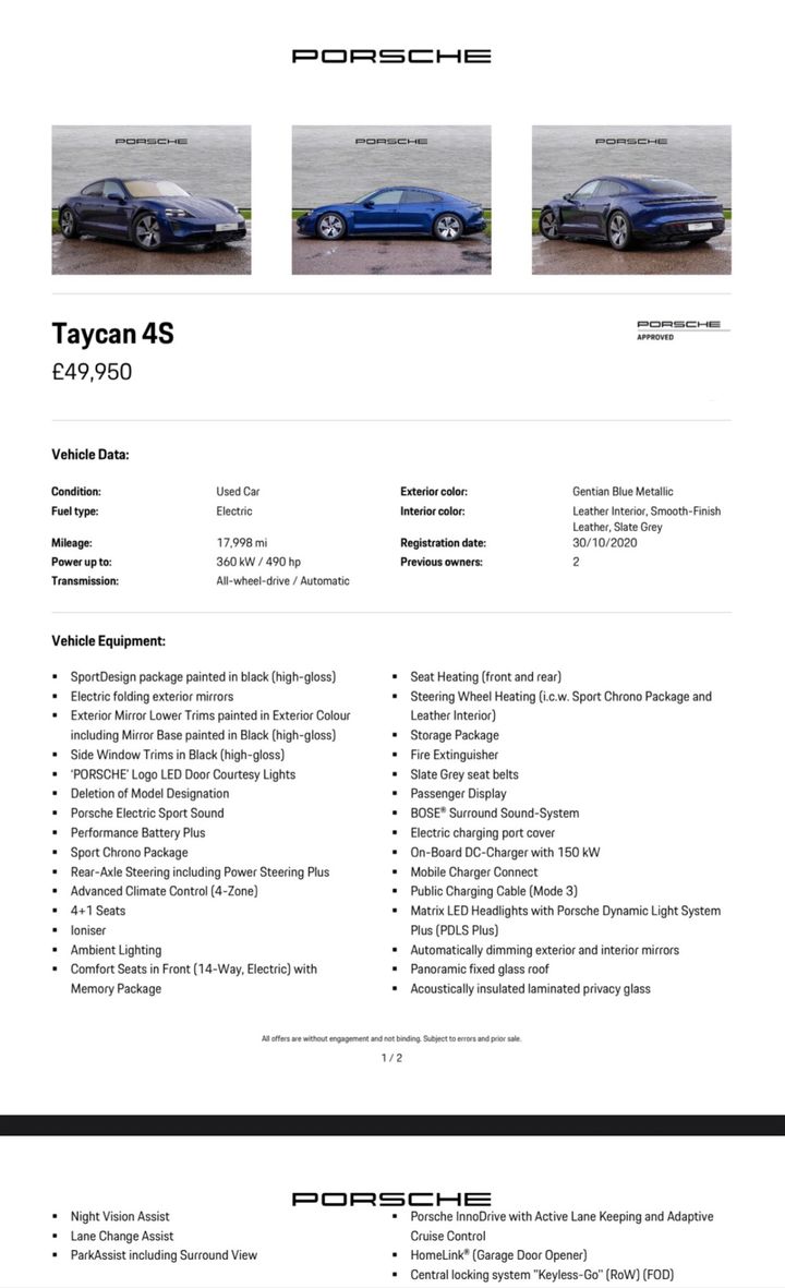 Seems like a pretty stacked spec for a 4S, and far more palatable to me than a Taycan Turbo (The Turbo S is a relative bargain but real world range is horrific)
