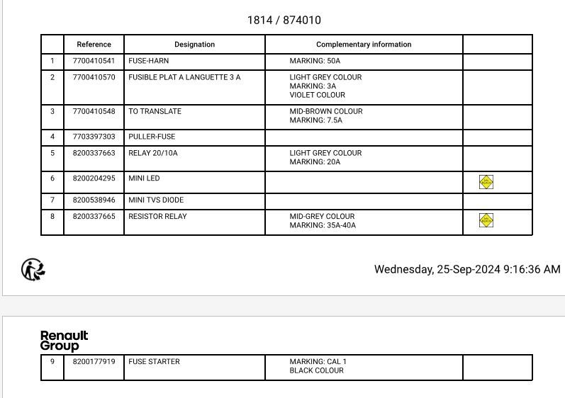 To add to the knowledge base, here is the part numbers to start relays etc as sent by my closest Alpine service centre, that happens to shutting their doors to Renault & Alpine service in 2 days time!
