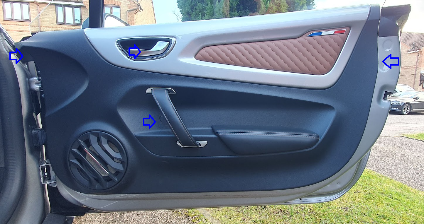 The door card sits on the top of the door, so after releasing the 8x clips the door panel lifted off.