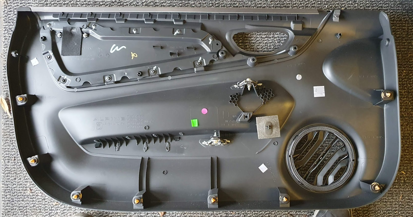 Access into the inside of the door is covered with a thick, flexible polystyrene (?) cover which is glued in place. I could see no other option other than cutting this with a knife to remove. Unfortunately I didn’t take a picture of the whole of the door with this cover in place: