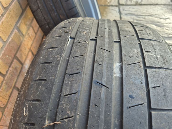 Tyres have minimal tread, and some are worn on the outer edges.