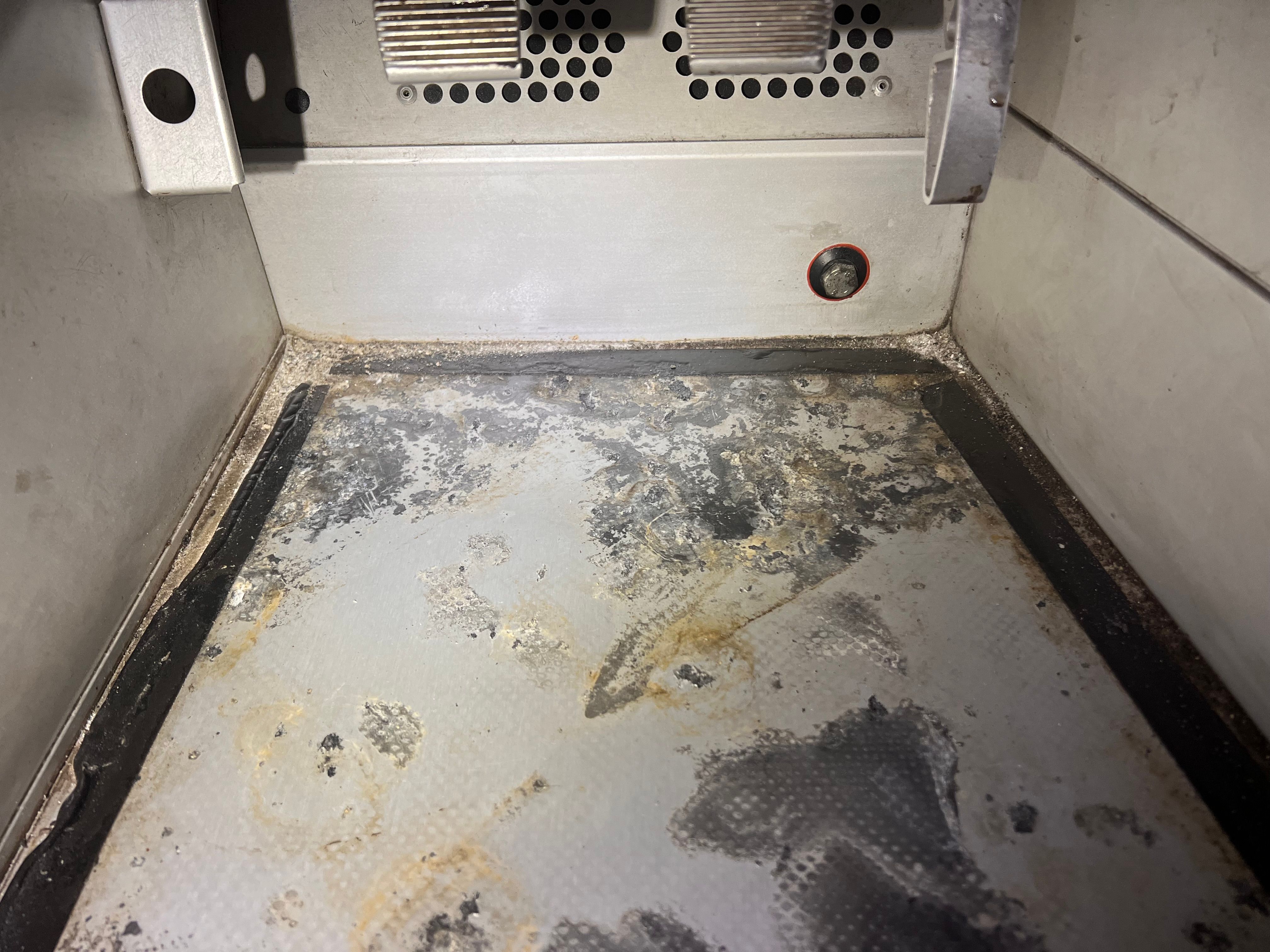 The oxidising is usually under the hard rubber mat that you’ve photographed, the water gets trapped and causes this. Have you a pic of the underside of that location?